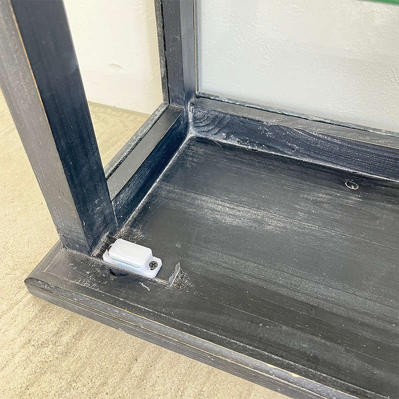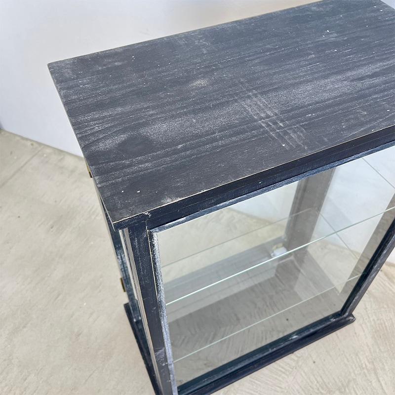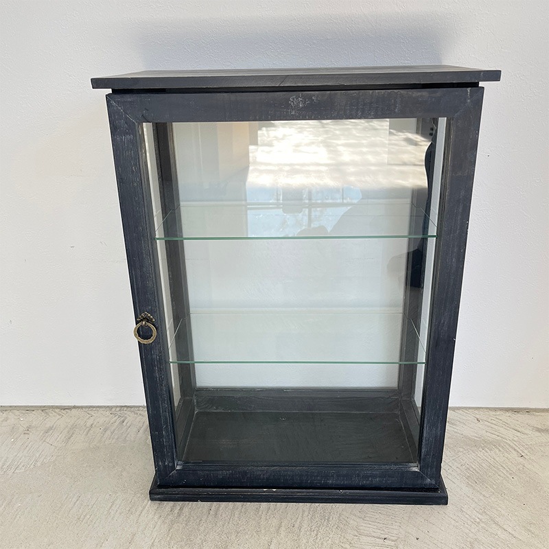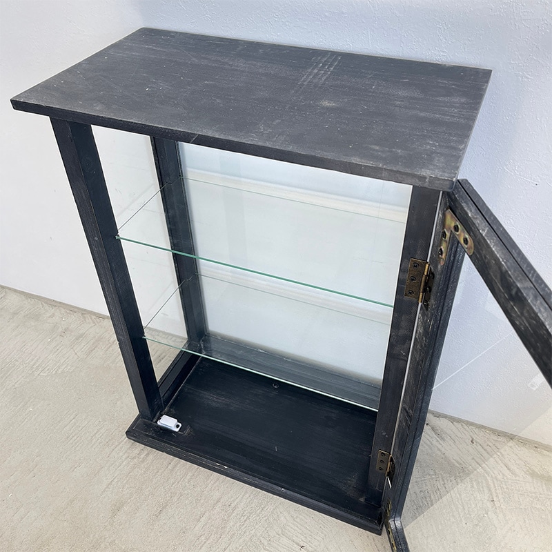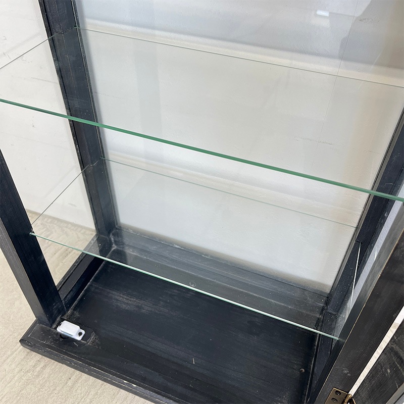 シックなブラックフレームにクリアなガラスを組み合わせた、シンプルなディスプレイキャビネット。