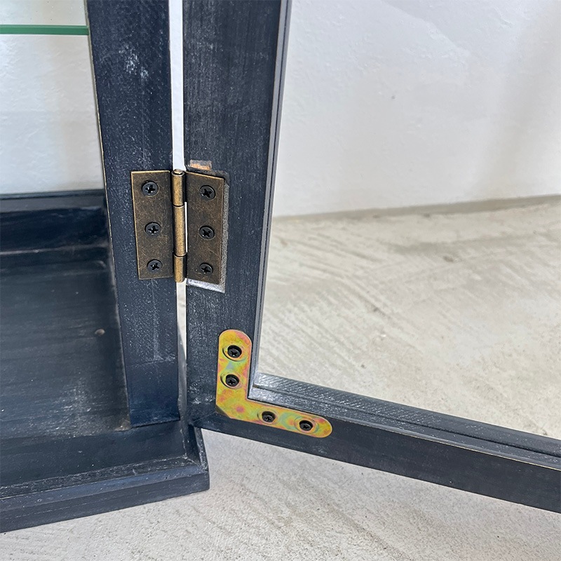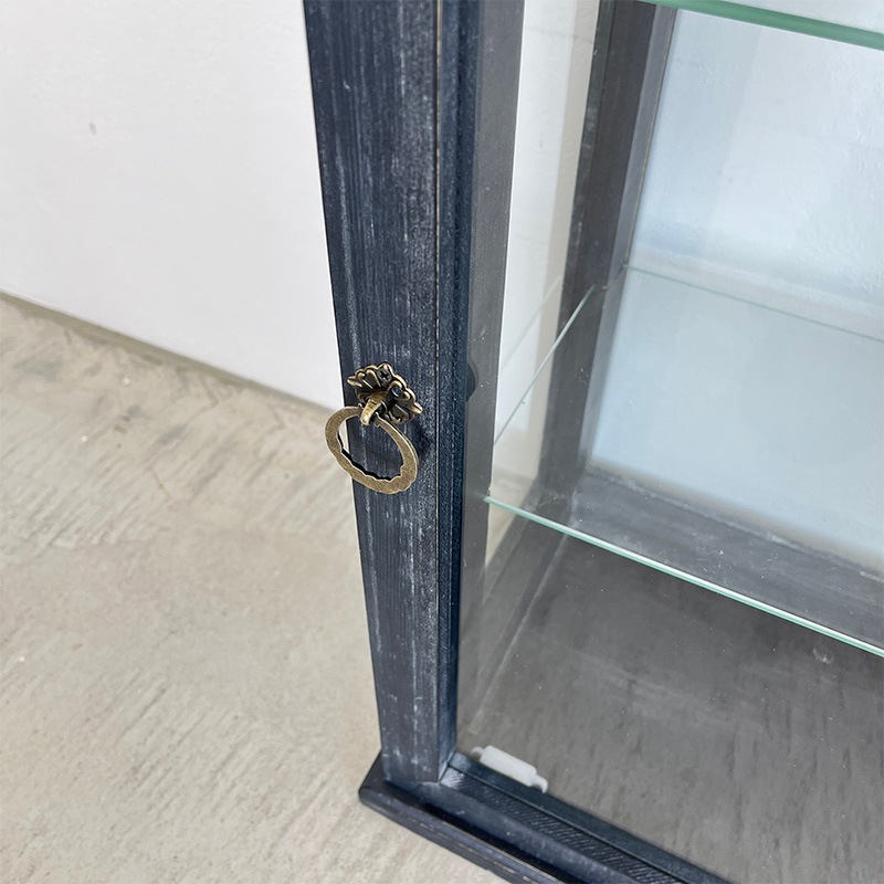 中のアイテムを美しく引き立てるガラス棚が2段付きで、見せる収納や演出にぴったりです。