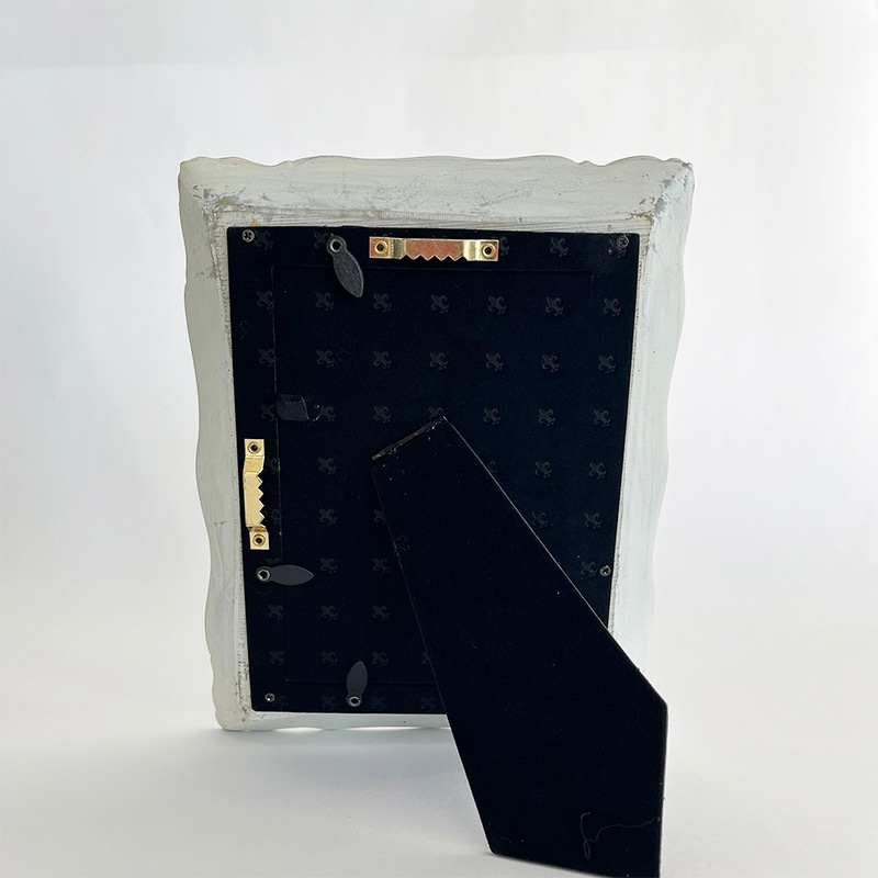 アイボリーのベースに、控えめなシルバー加工を施したフォトフレーム。