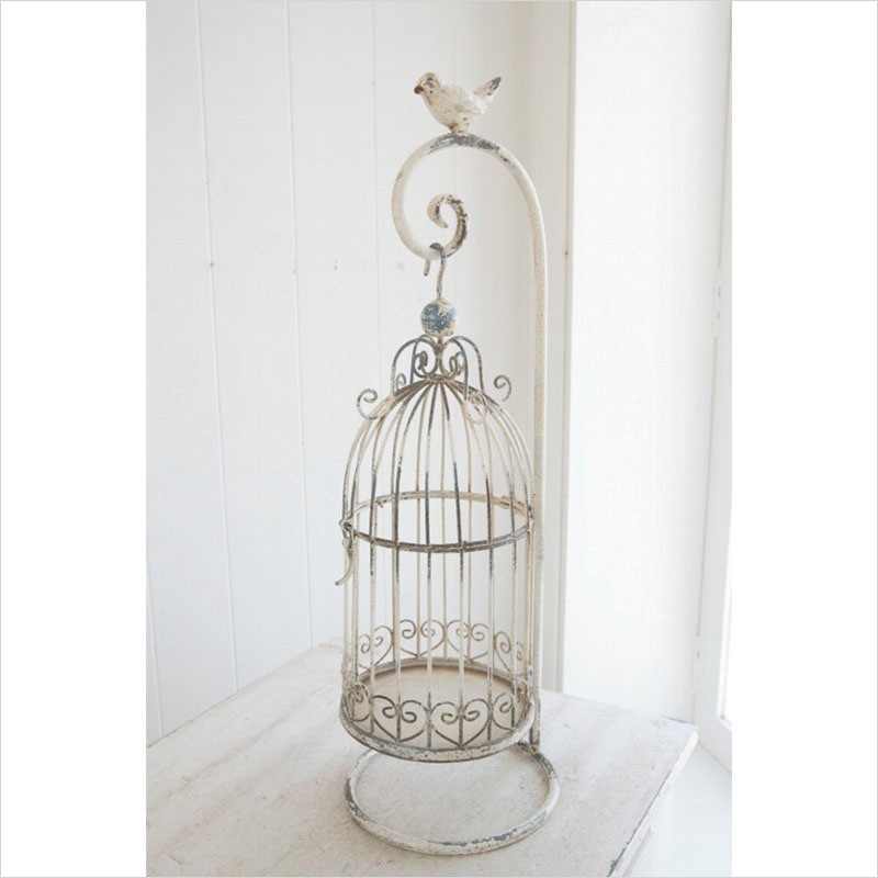 繊細な曲線と小鳥のモチーフが愛らしい、吊り下げ型のバードケージスタンド。