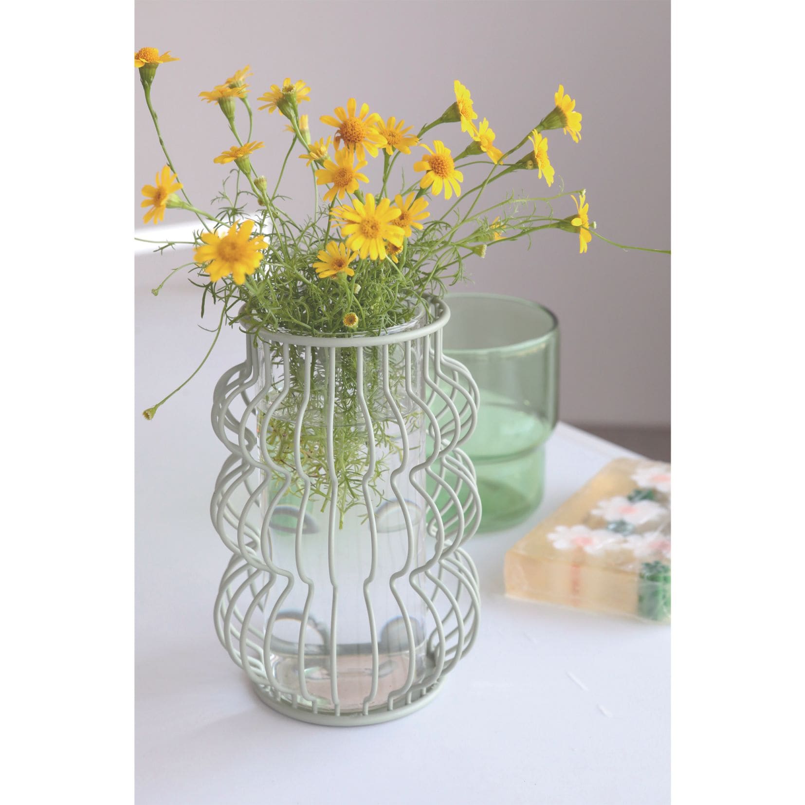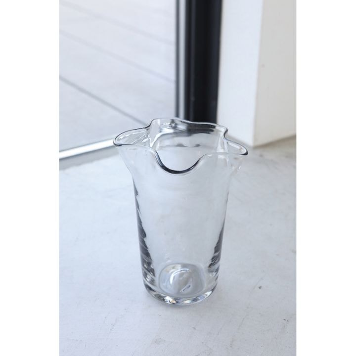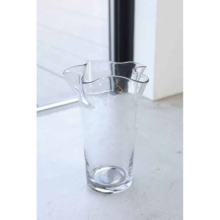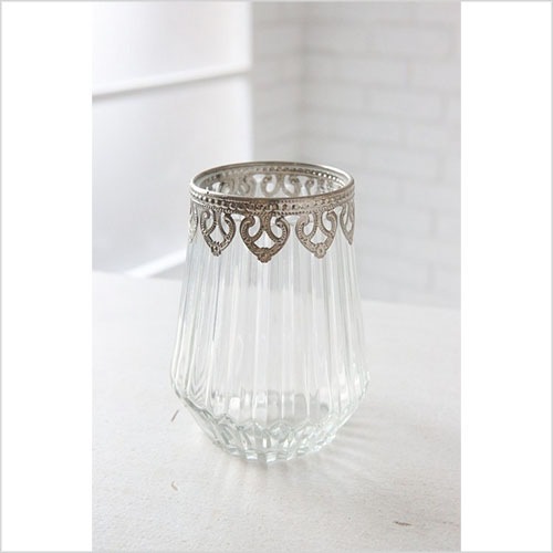 すっきりとした縦ラインのガラスに、繊細な装飾をあしらったシリンダーベース。
