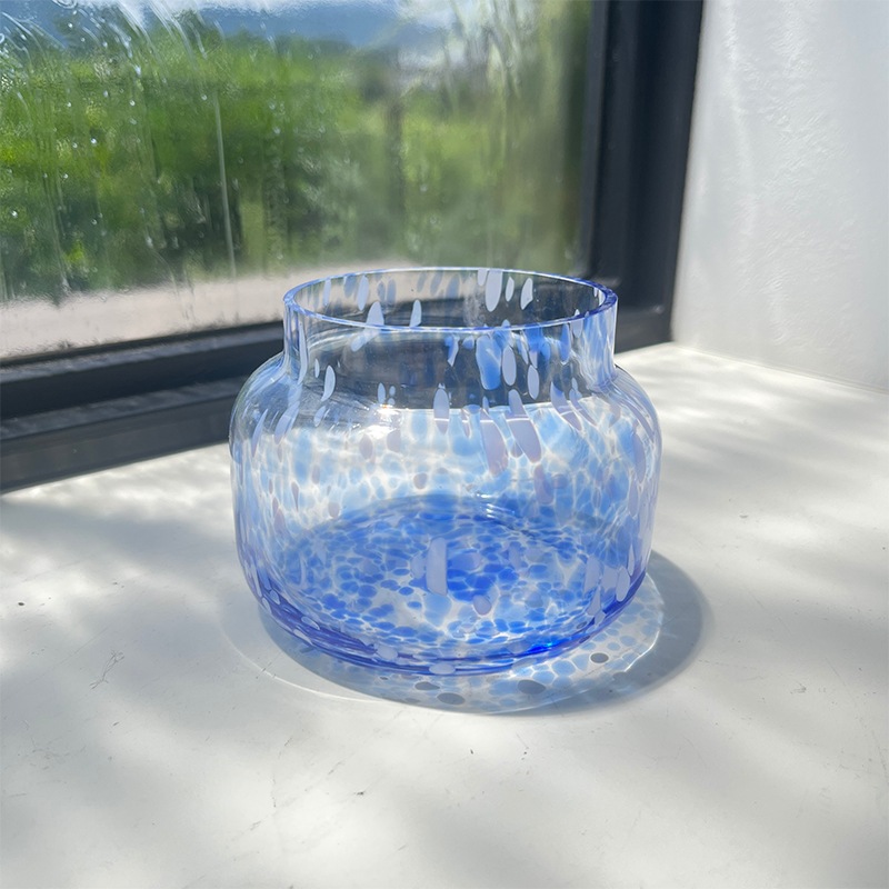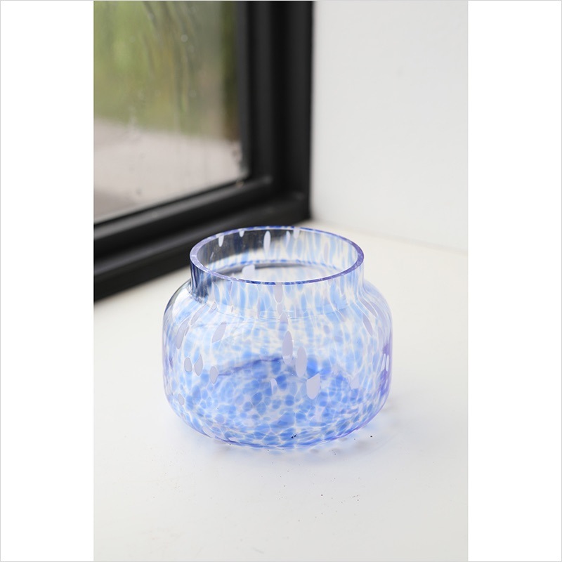 やさしいブルーに白が混ざり合った、透明感あふれる色合いが魅力のガラスカップ