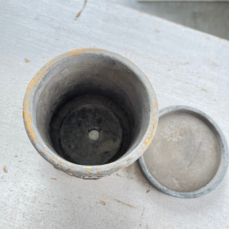 どこか異国の陶器を思わせる風合いで、観葉植物やフェイクグリーンの鉢カバーとしておすすめ。