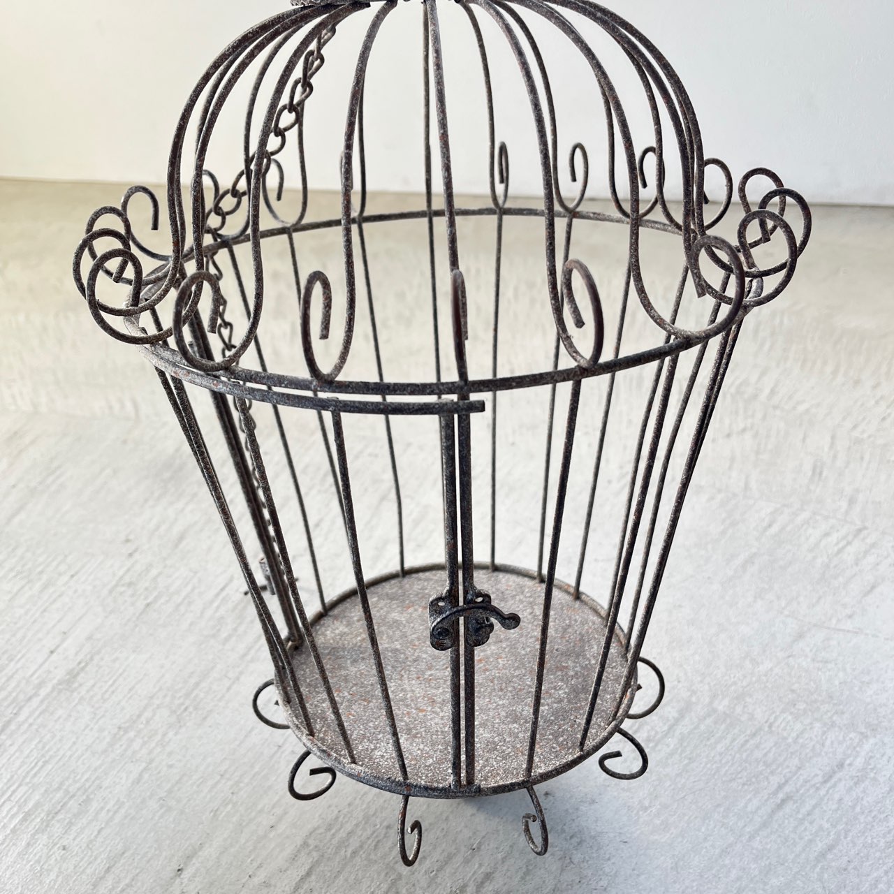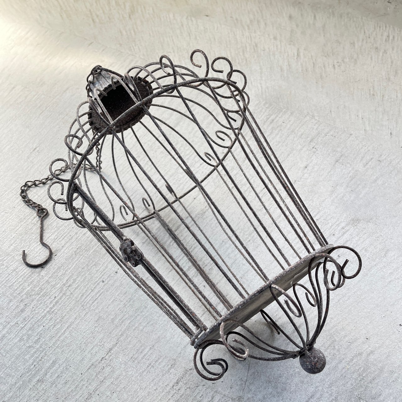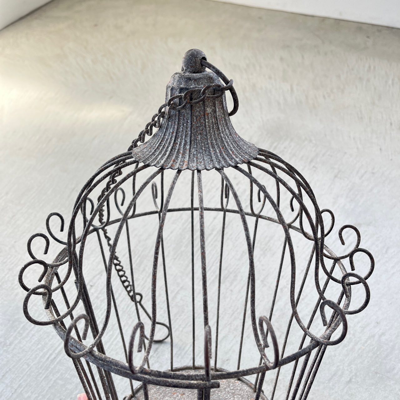優雅な鳥かごデザインのハンギングディスプレイ。