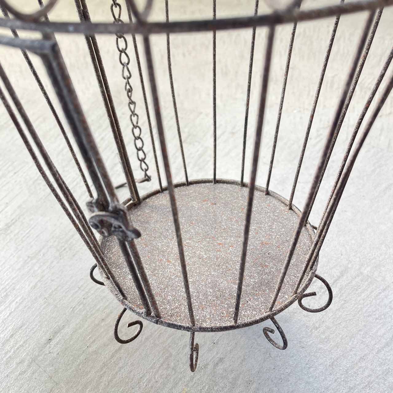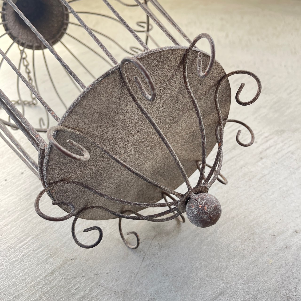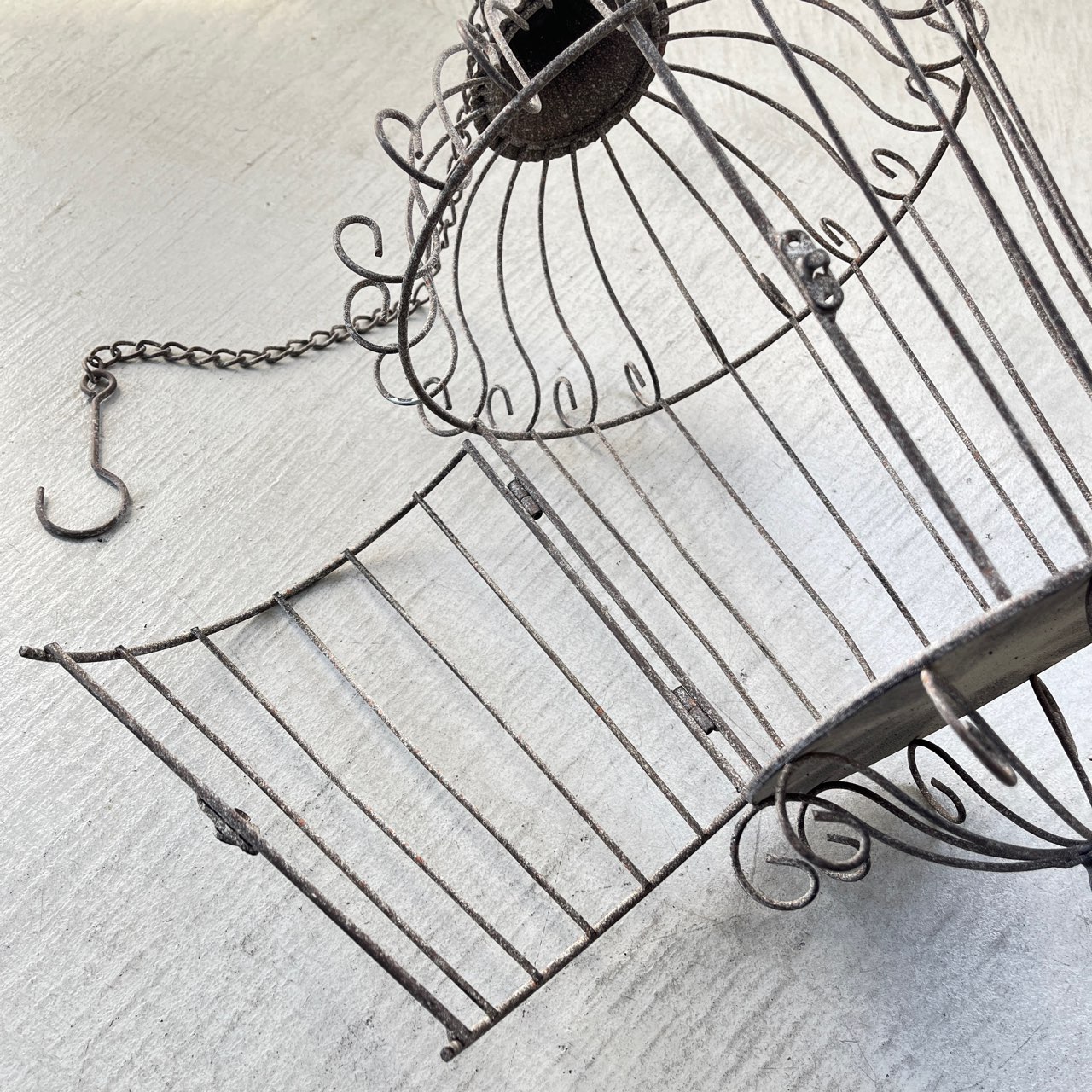 優雅な鳥かごデザインのハンギングディスプレイ。