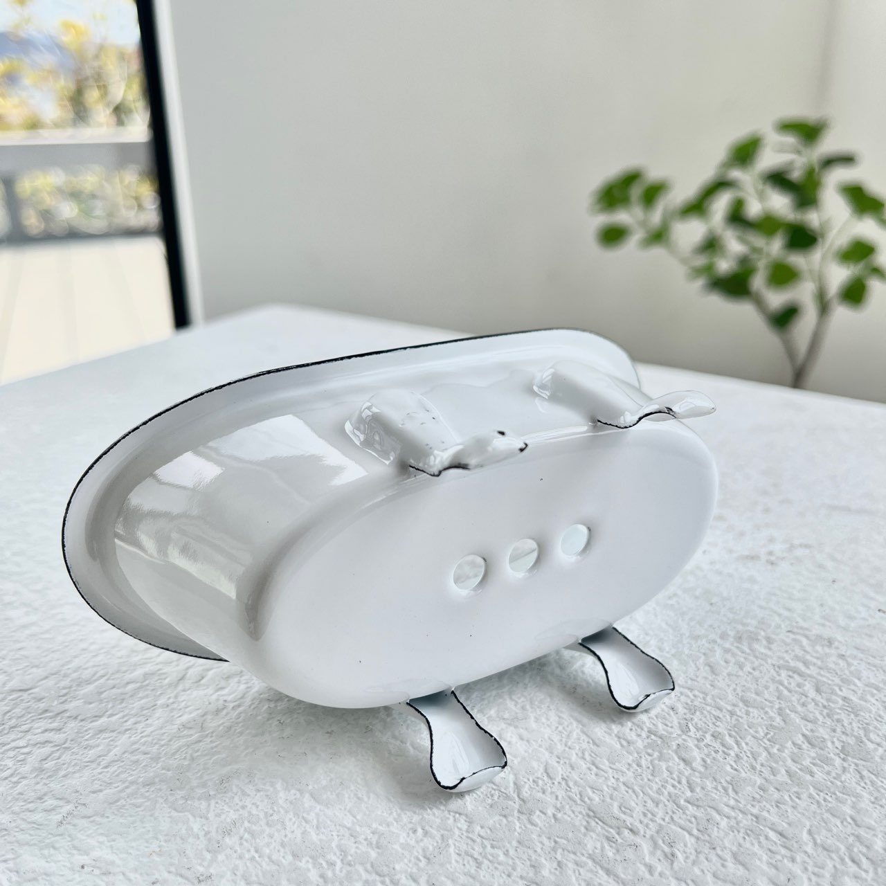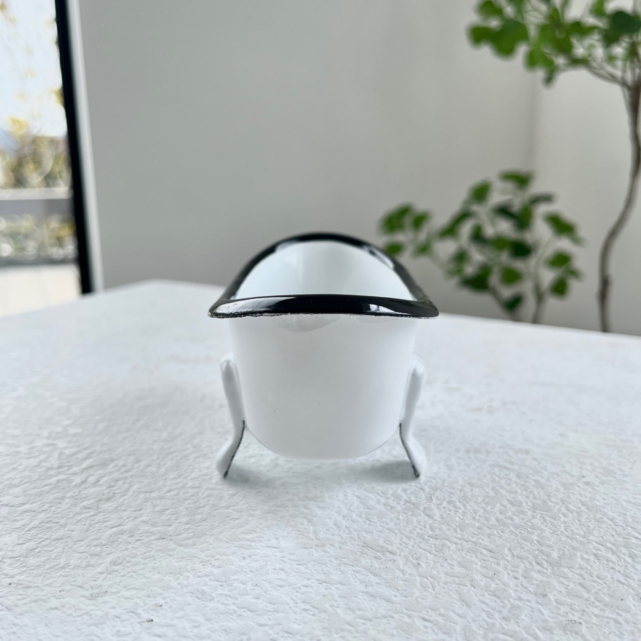 ホーロー風の仕上げとクラシカルな脚付きデザインが、どこかレトロで可愛らしい雰囲気を演出します。