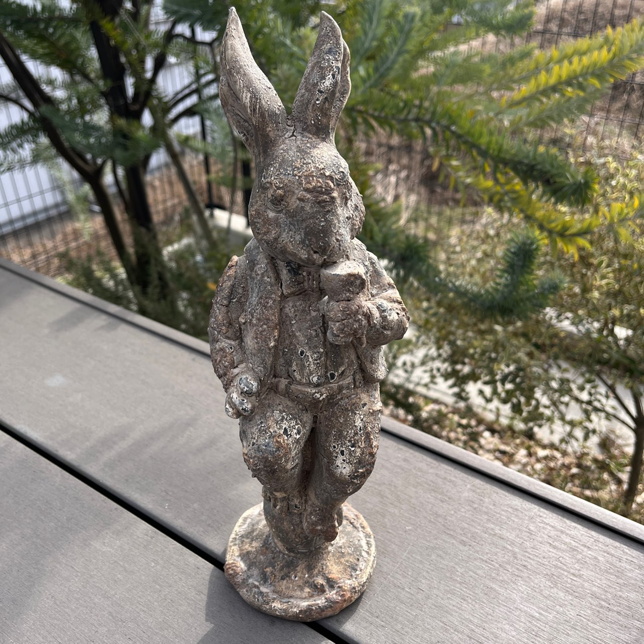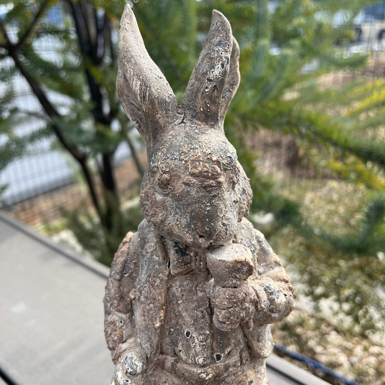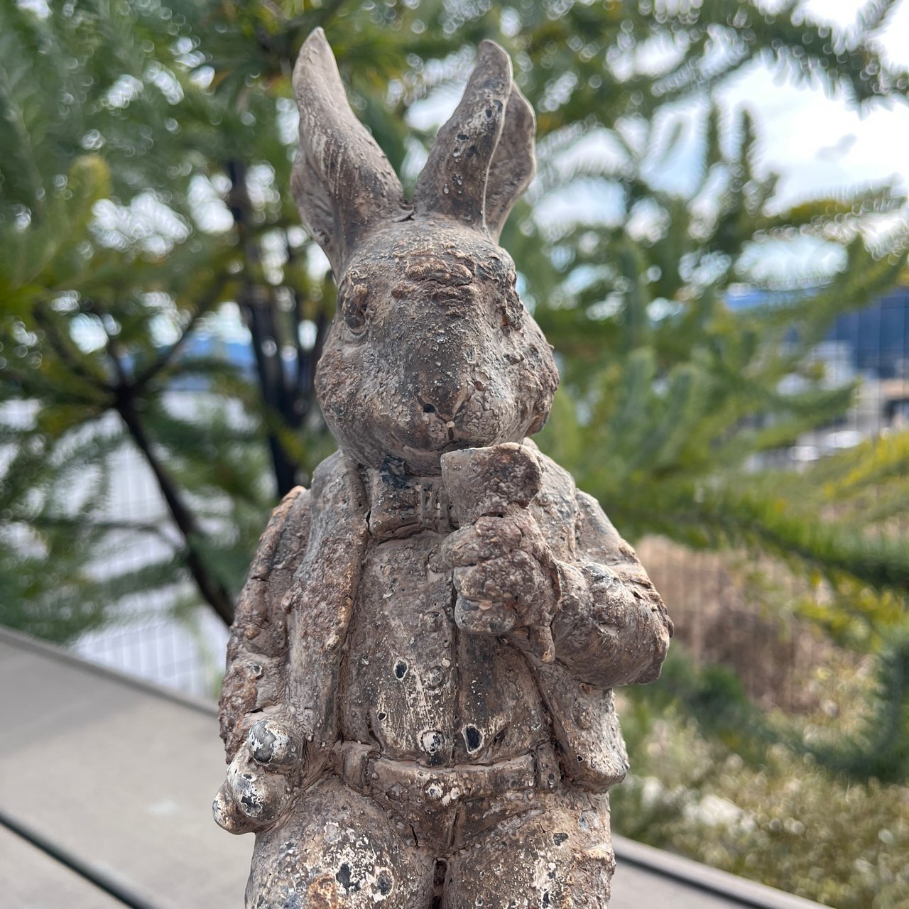 ユニークなポーズで存在感を放つウサギのオブジェ。