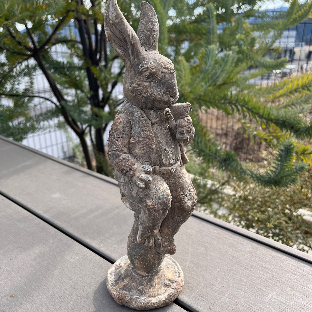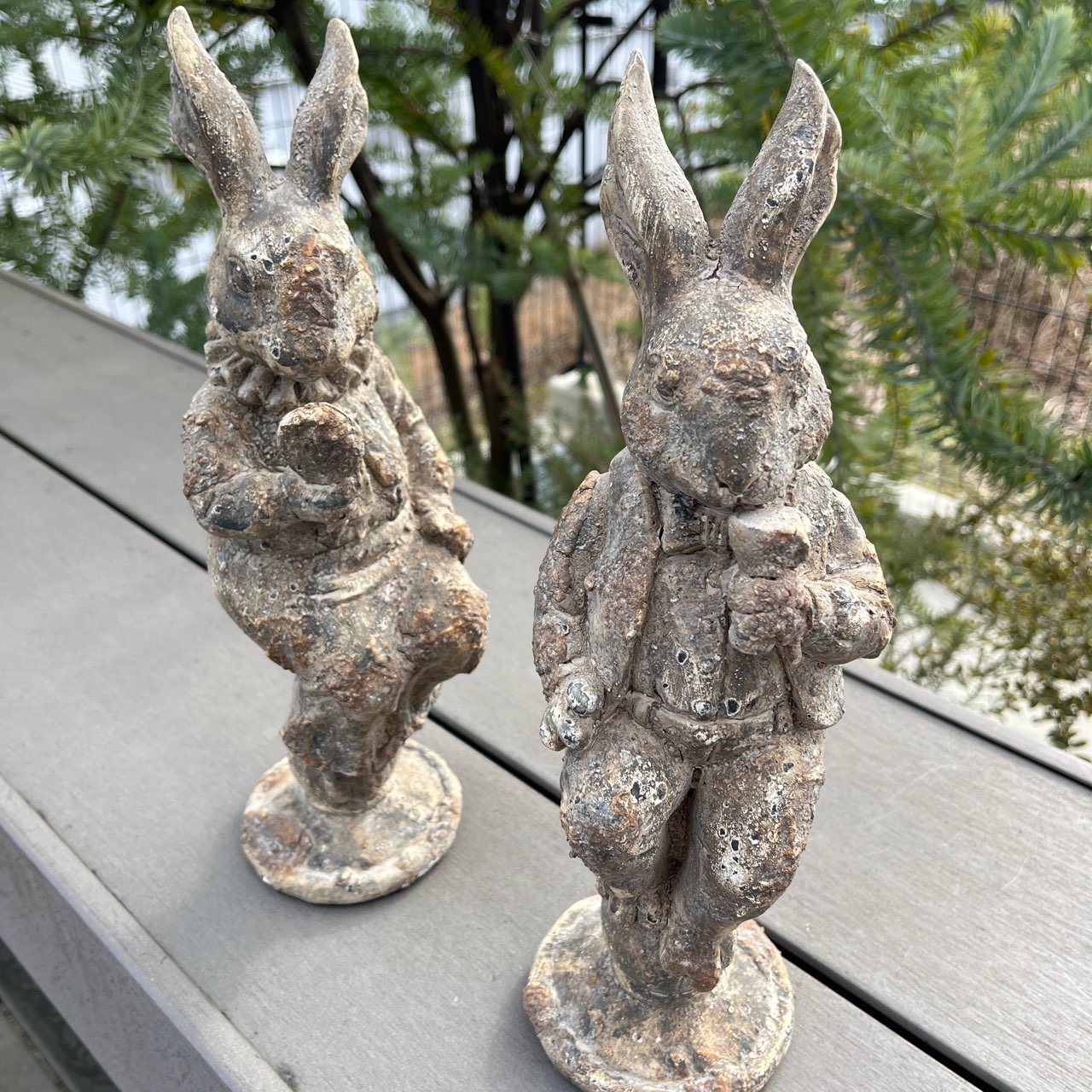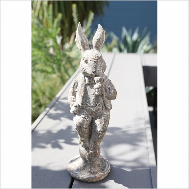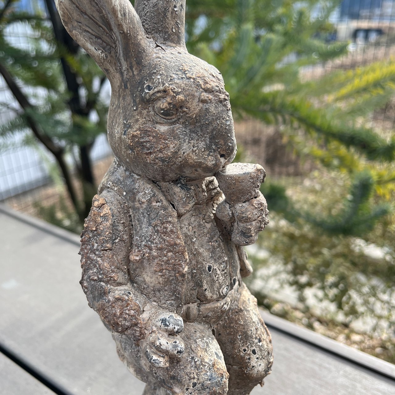 ユニークなポーズで存在感を放つウサギのオブジェ。