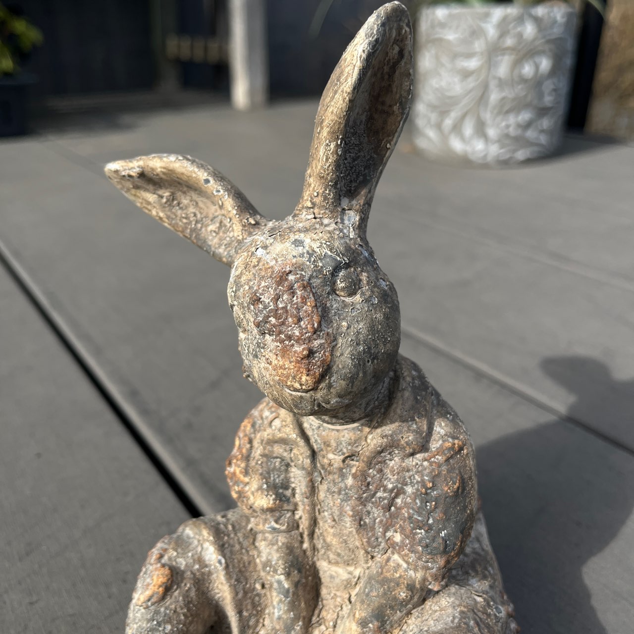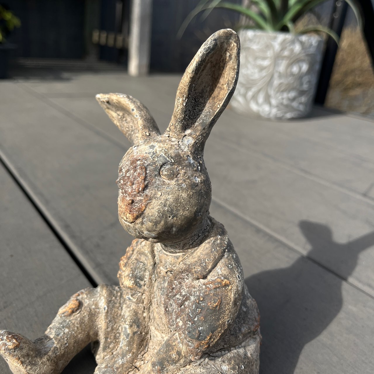 無邪気な姿が愛らしい、座りポーズのウサギオブジェ。