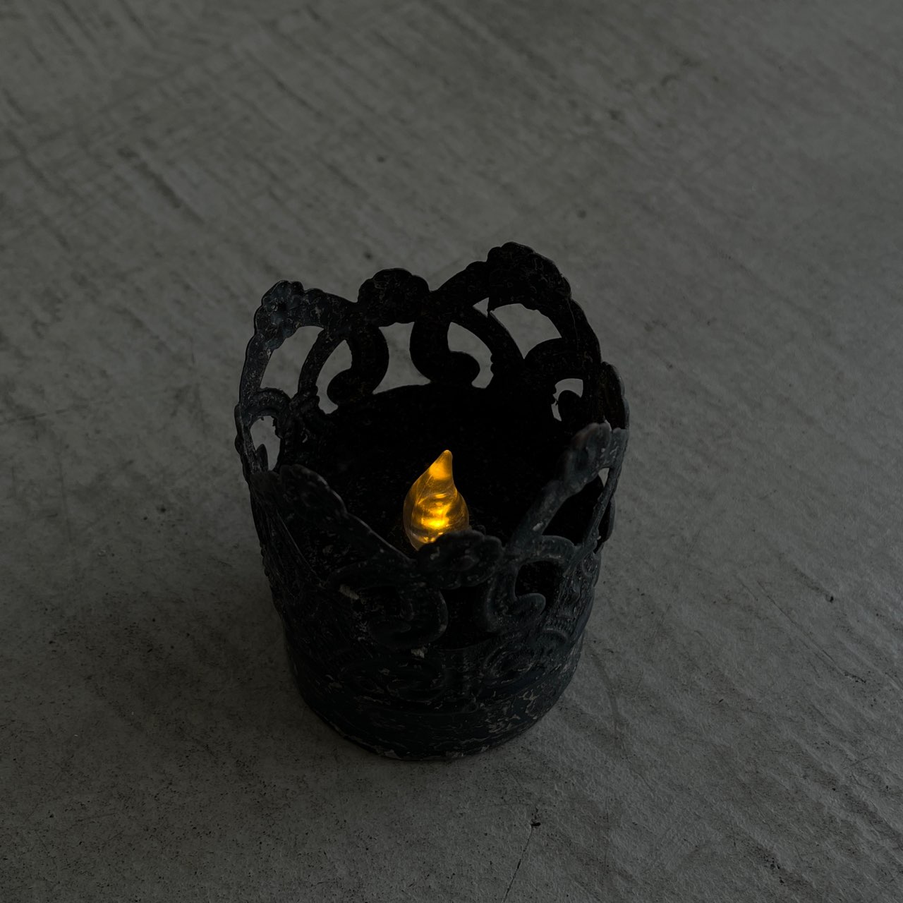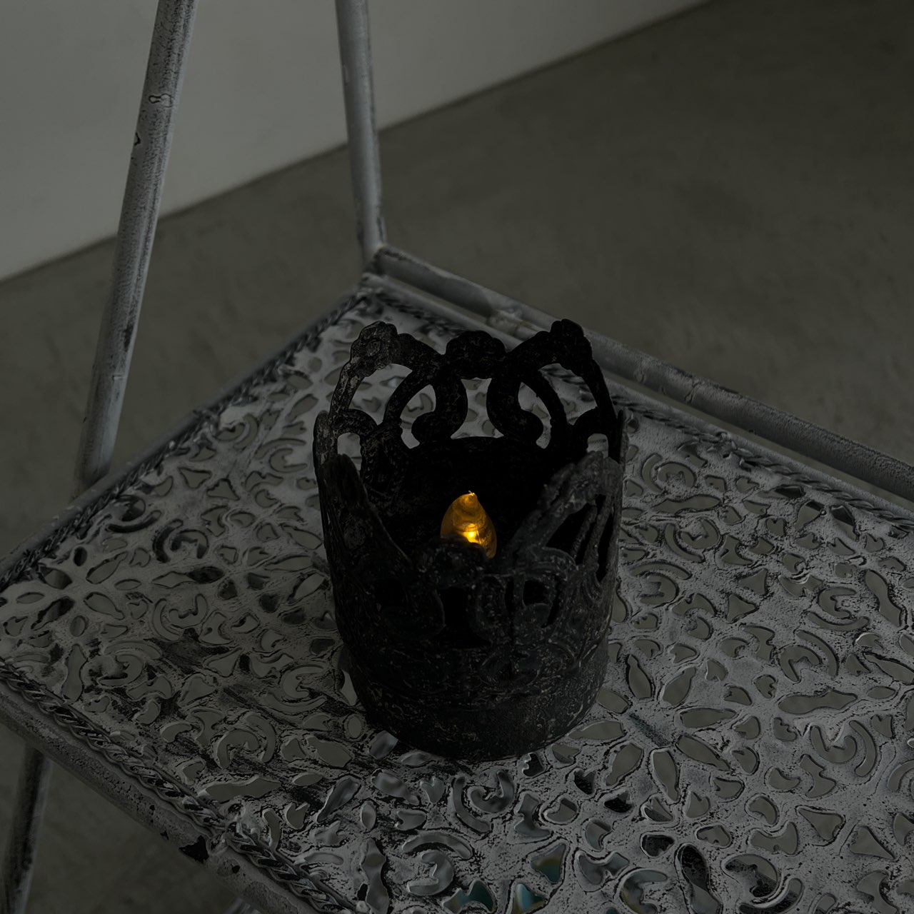 小ぶりなLEDライトが魅力的な、クラウン風のアイアンホルダー。