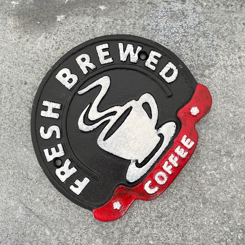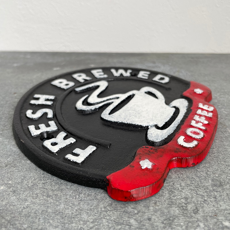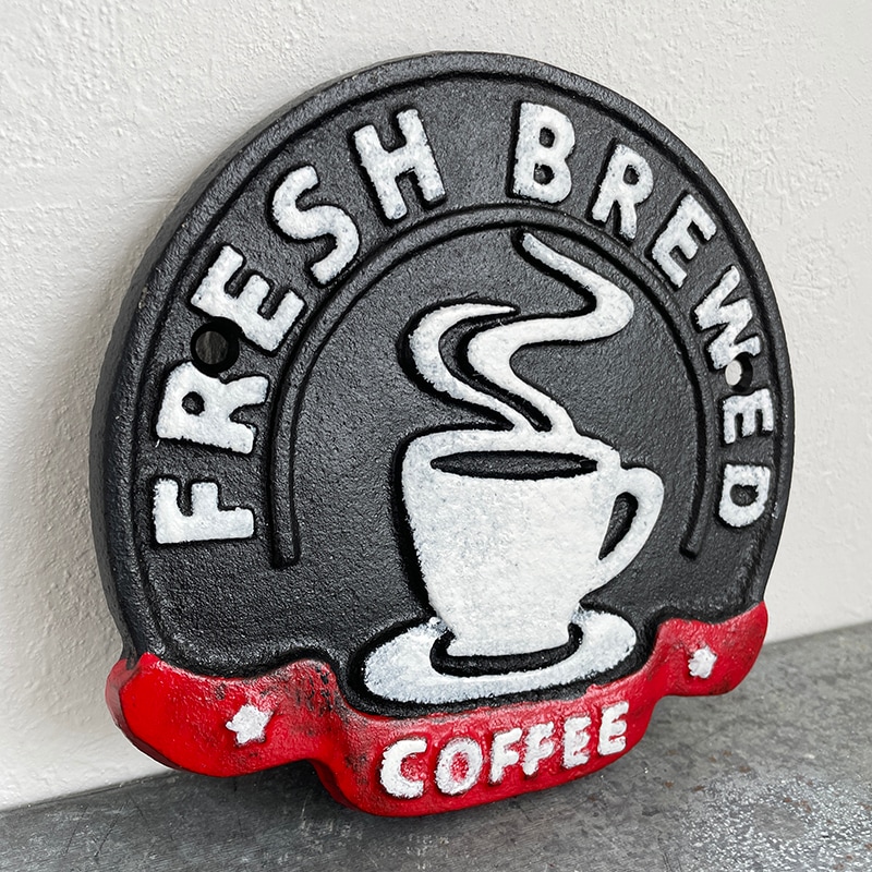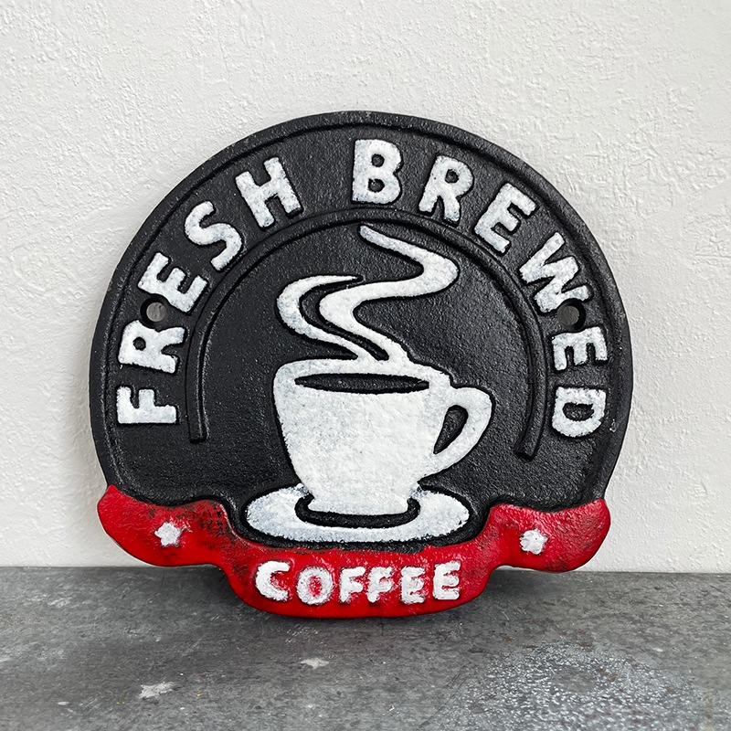 アイアン製の重厚感がある「FRESH BREWED COFFEE」のサインプレートです。