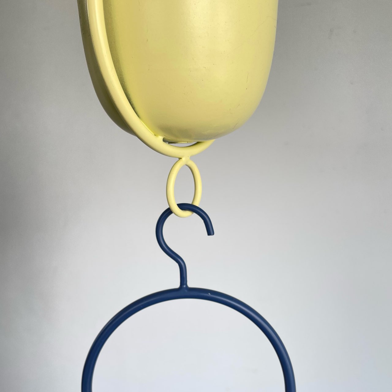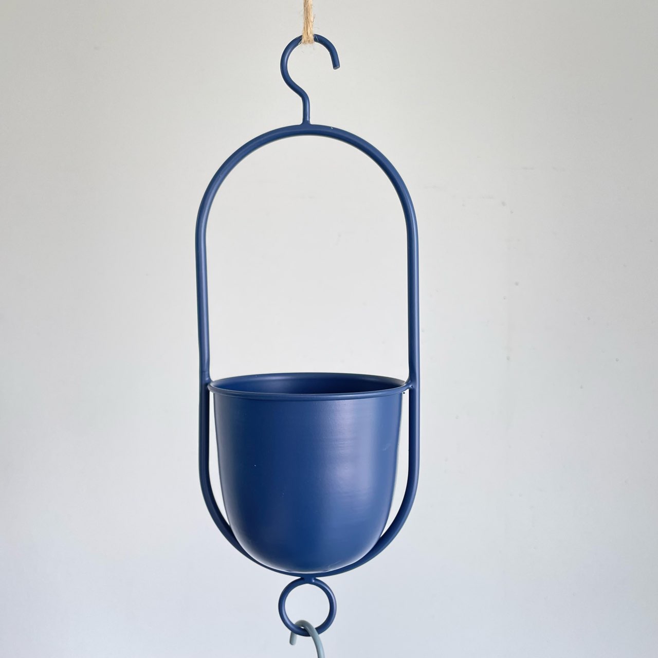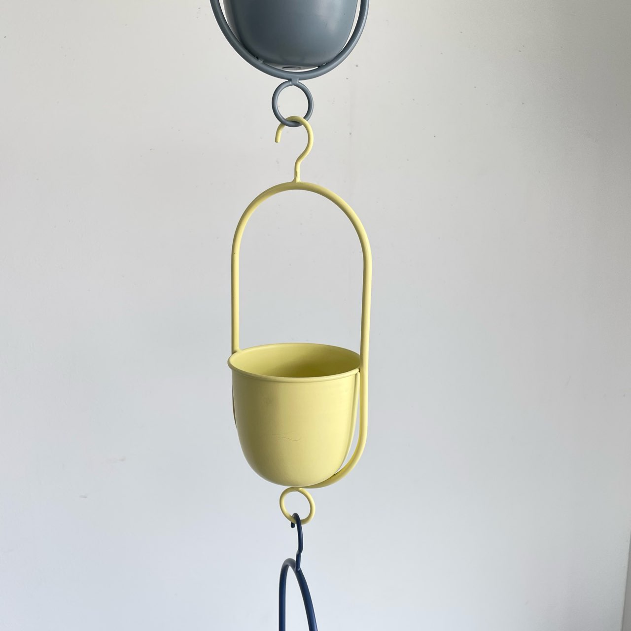 ネイビー、イエロー、グレー、ボルドーの4色展開、コンパクトなハンギングポットセット。