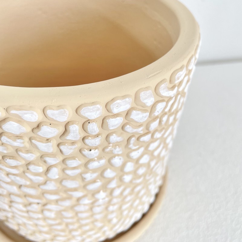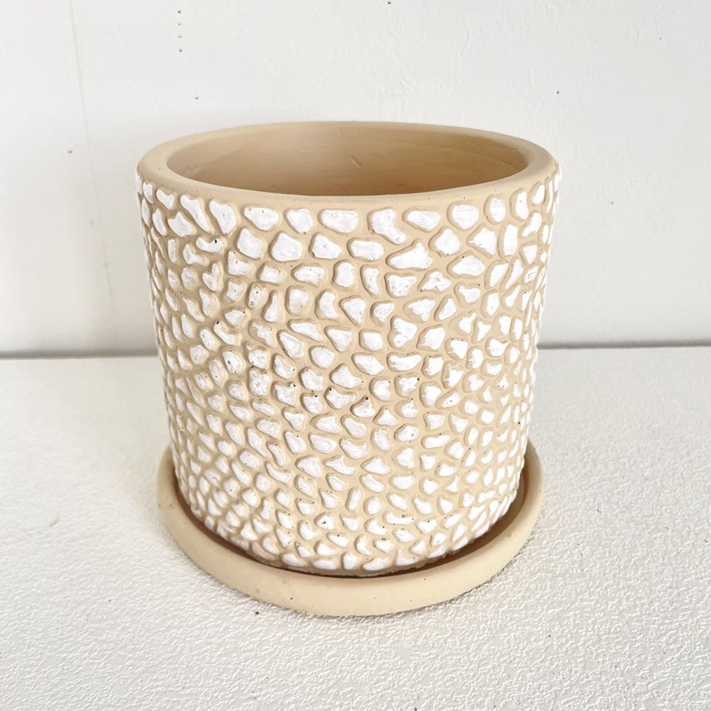 ハンドクラフトのような温もりを感じさせるデザインは、植物の生命力と調和し、お部屋に優しい雰囲気を添えます。