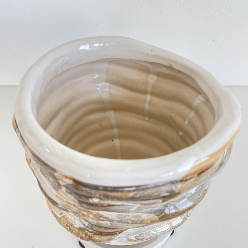 鉢全体が螺旋状にシェイプされたデザインは、光の当たり方によってエレガントな立体感を生み出します。