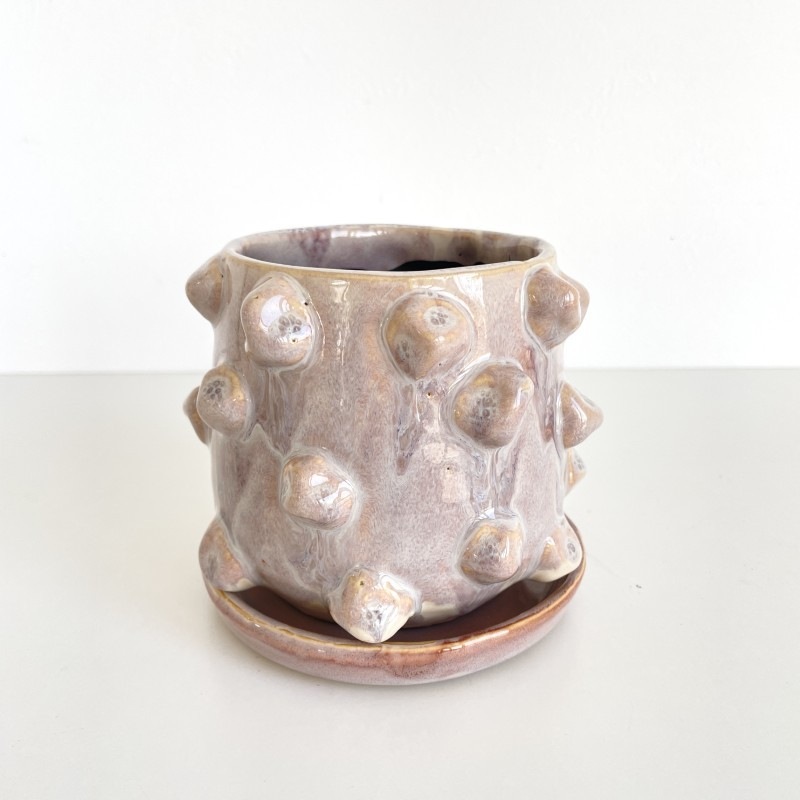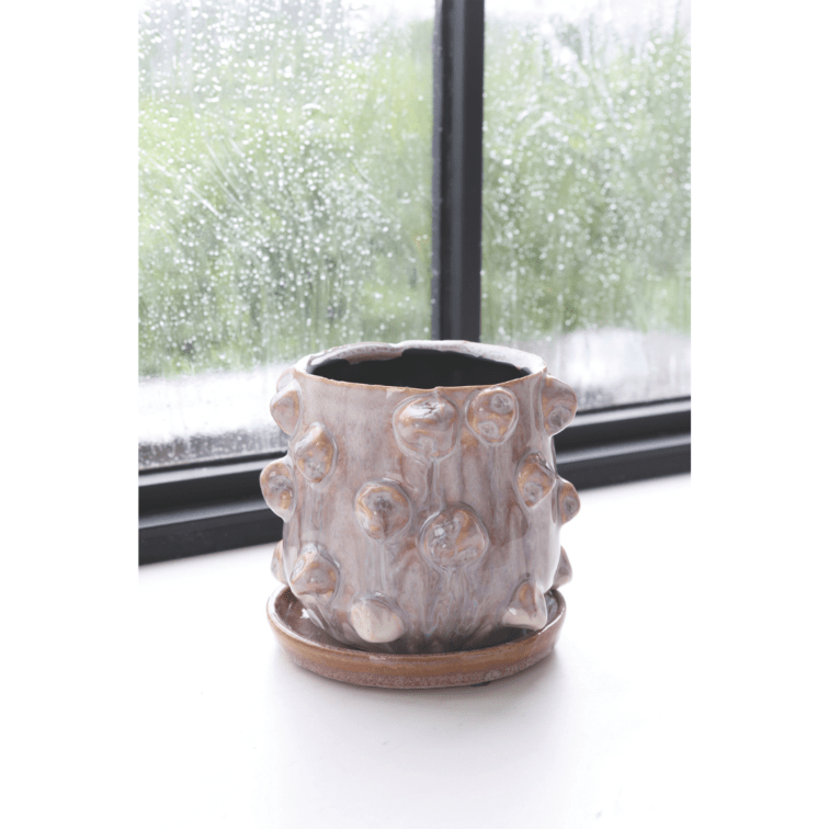 有機的なフォルムとカラーで、小さいながらも存在感抜群の陶器製フラワーポット。