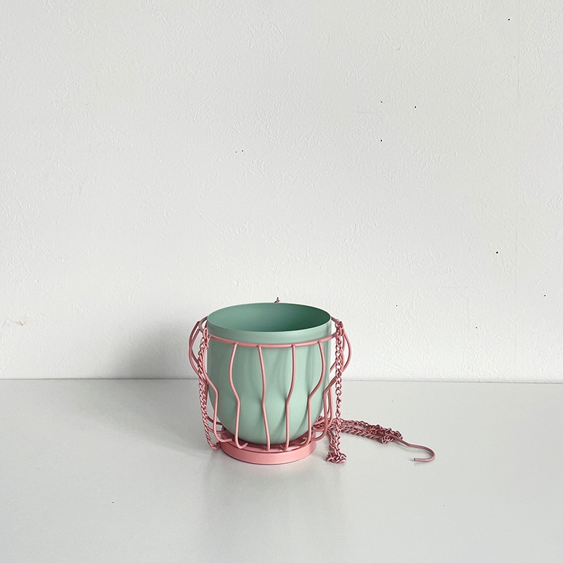 ポットを包み込むように施された曲線のワイヤーワークと、バイカラーの配色が、インテリアにポップで洗練された印象を与えます。