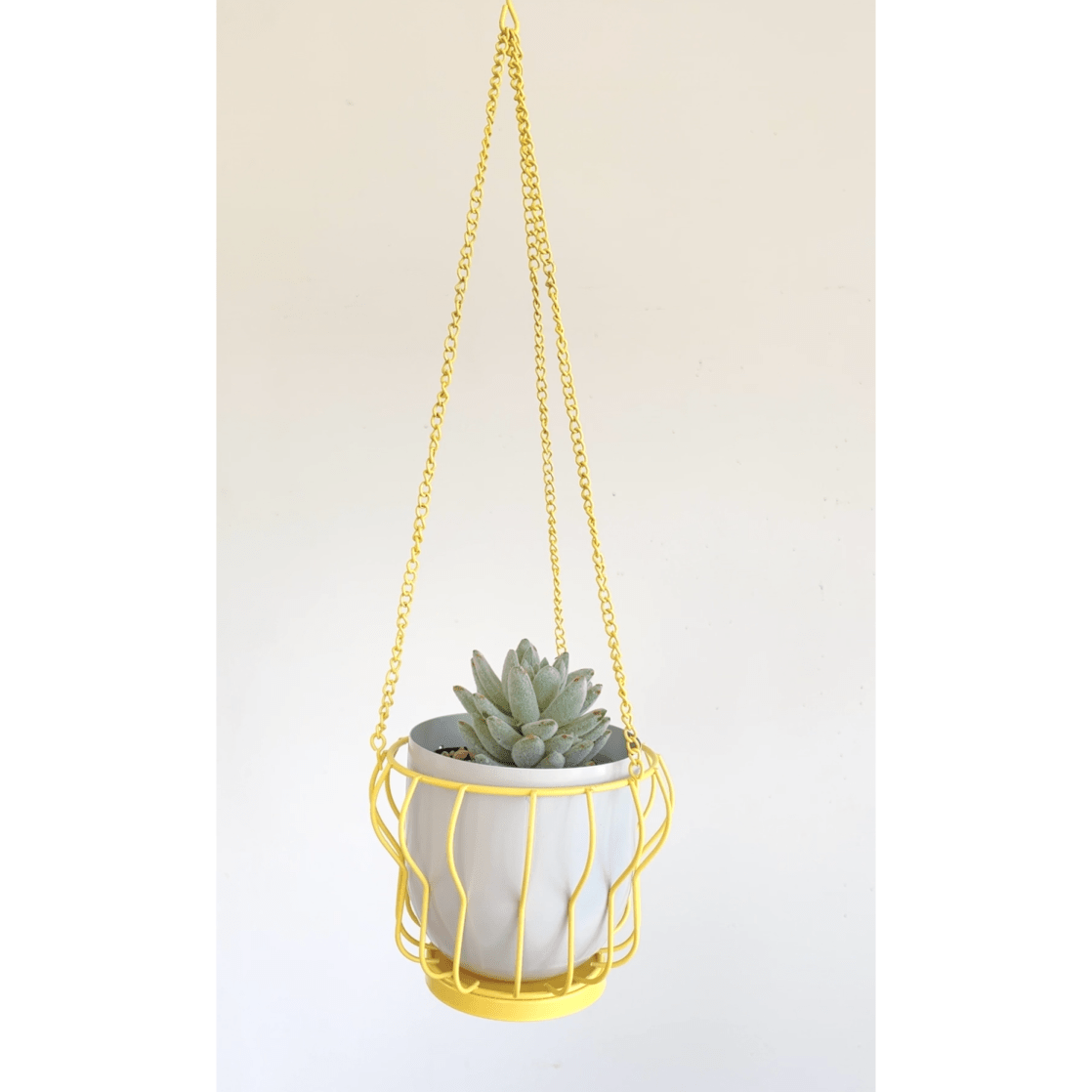 モダンで軽やかなデザインが魅力の、ワイヤーケージ付きハンギングフラワーポットです。