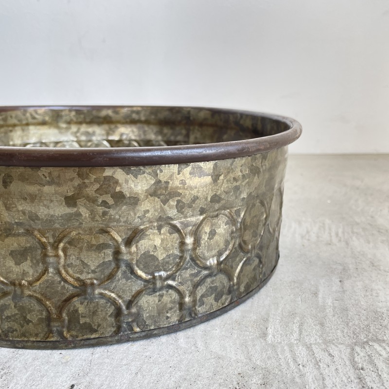 落ち着いたブロンズの色味と、どこかオリエンタルな装飾パターンが目を引くボウル。