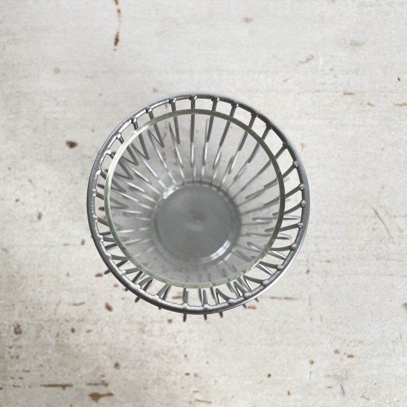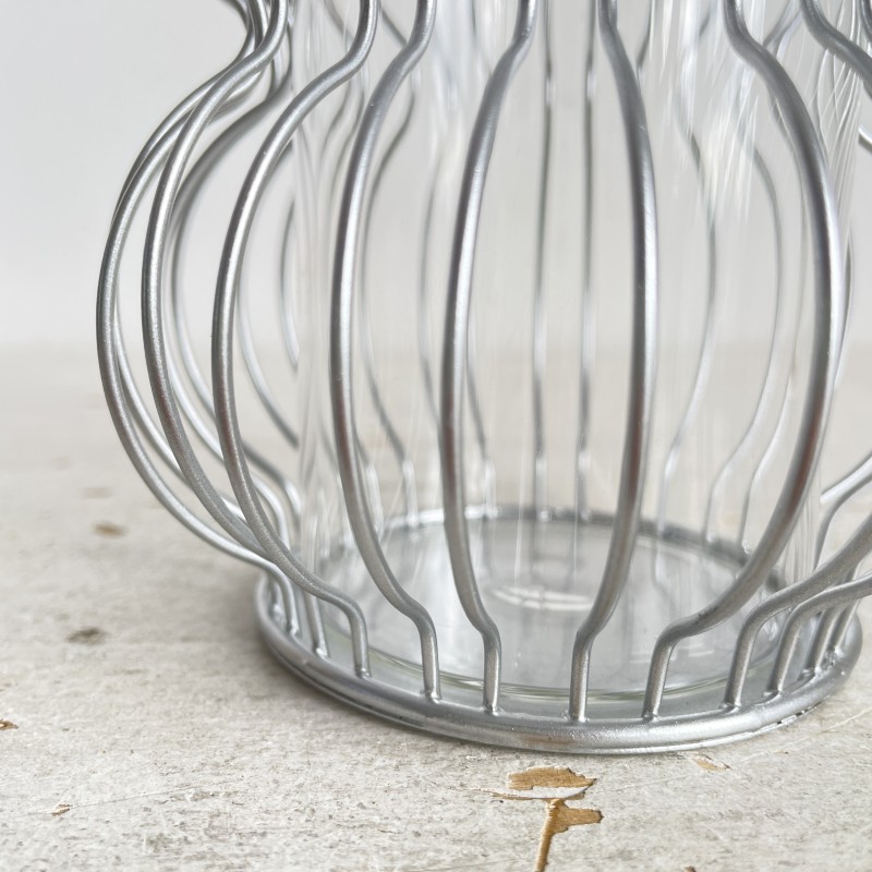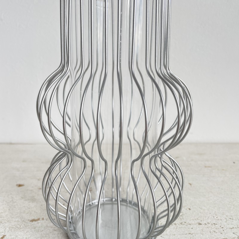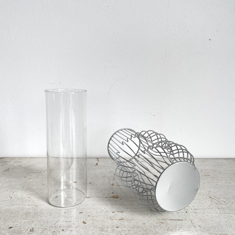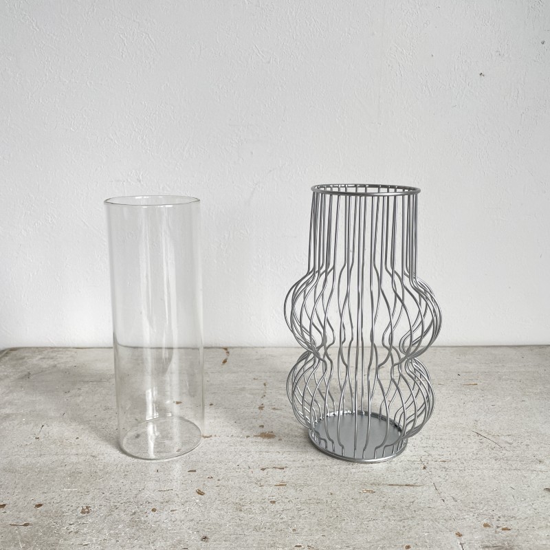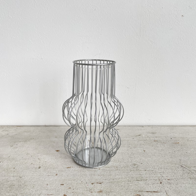 流線型のフォルムを描くワイヤーケージの中に、ガラスチューブを収めたデザインベース。