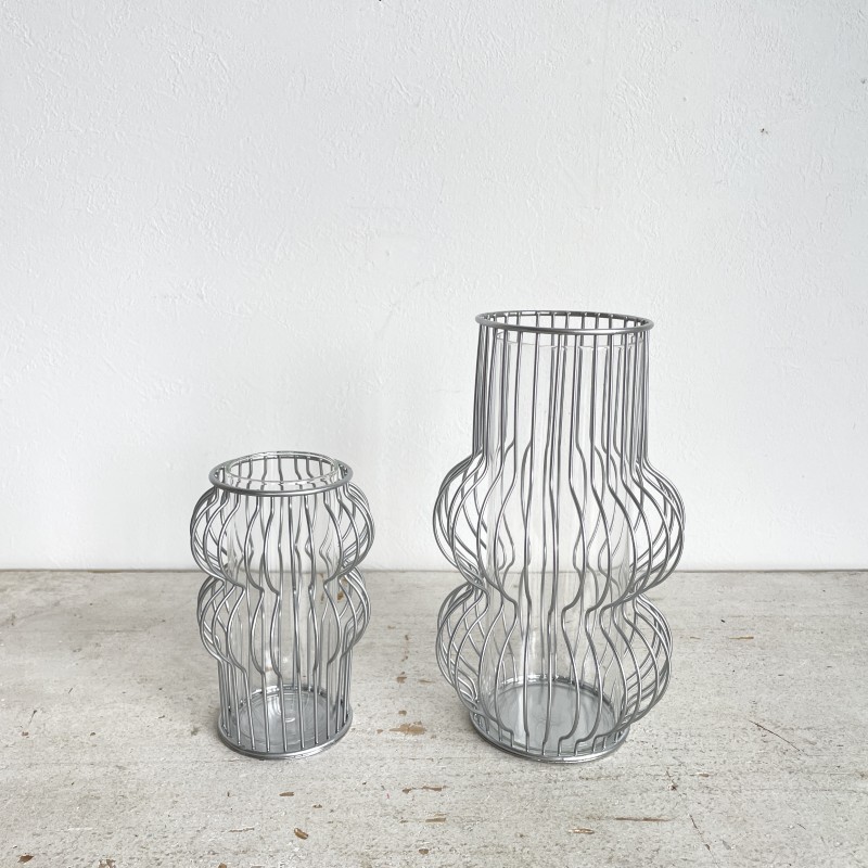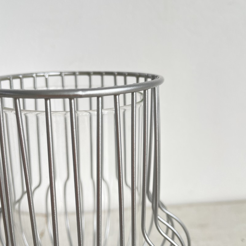 無機質なワイヤーと透明なガラスの組み合わせが、活けた花本来の色鮮やかさを一層クリアに引き立て、デスクや棚の上をスタイリッシュなステージへと変えてくれます。