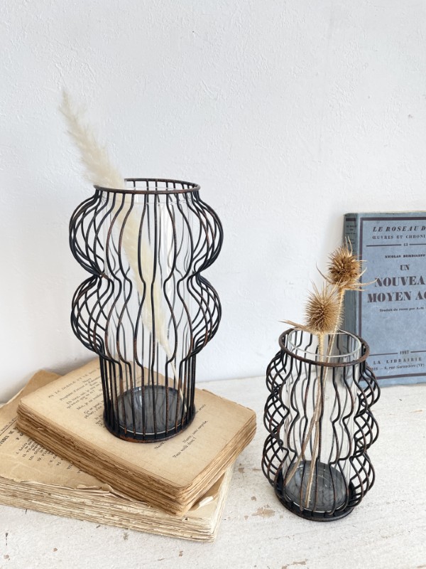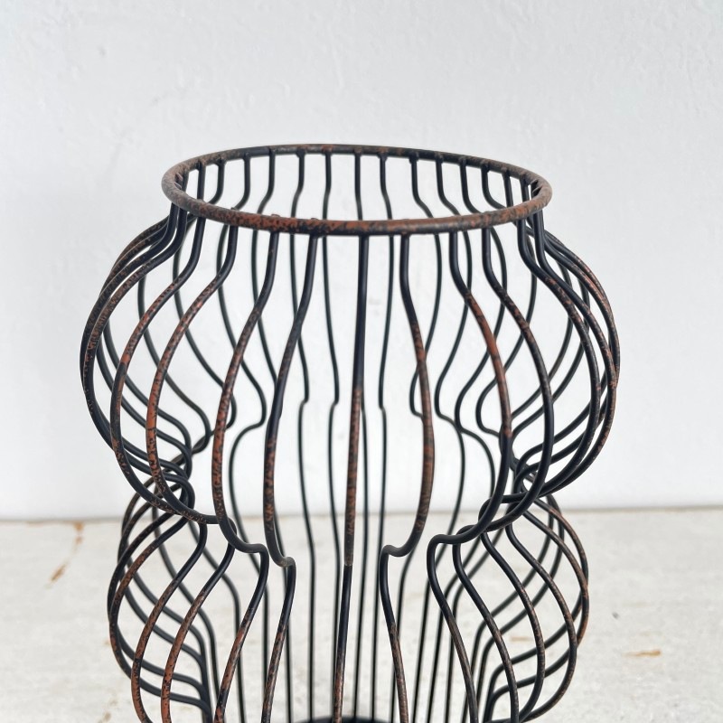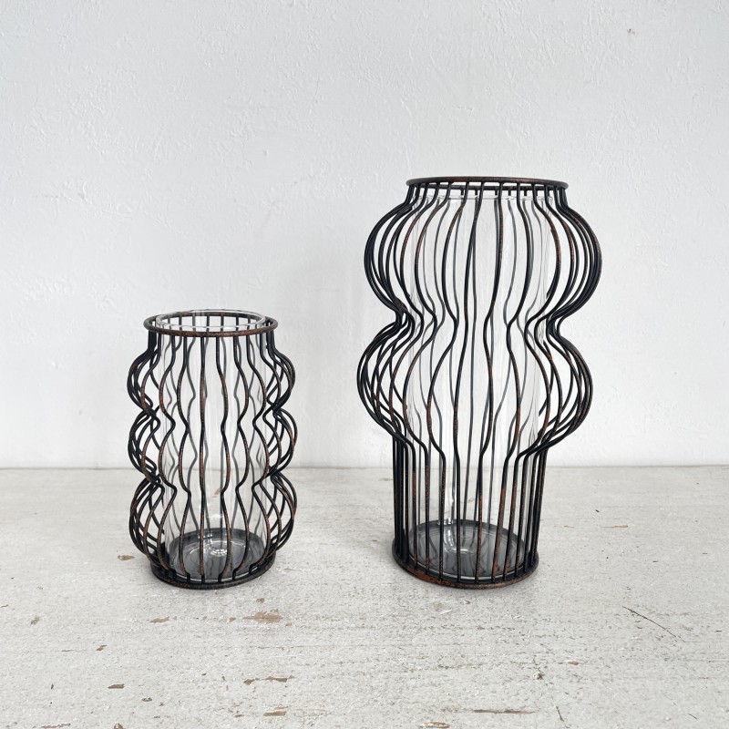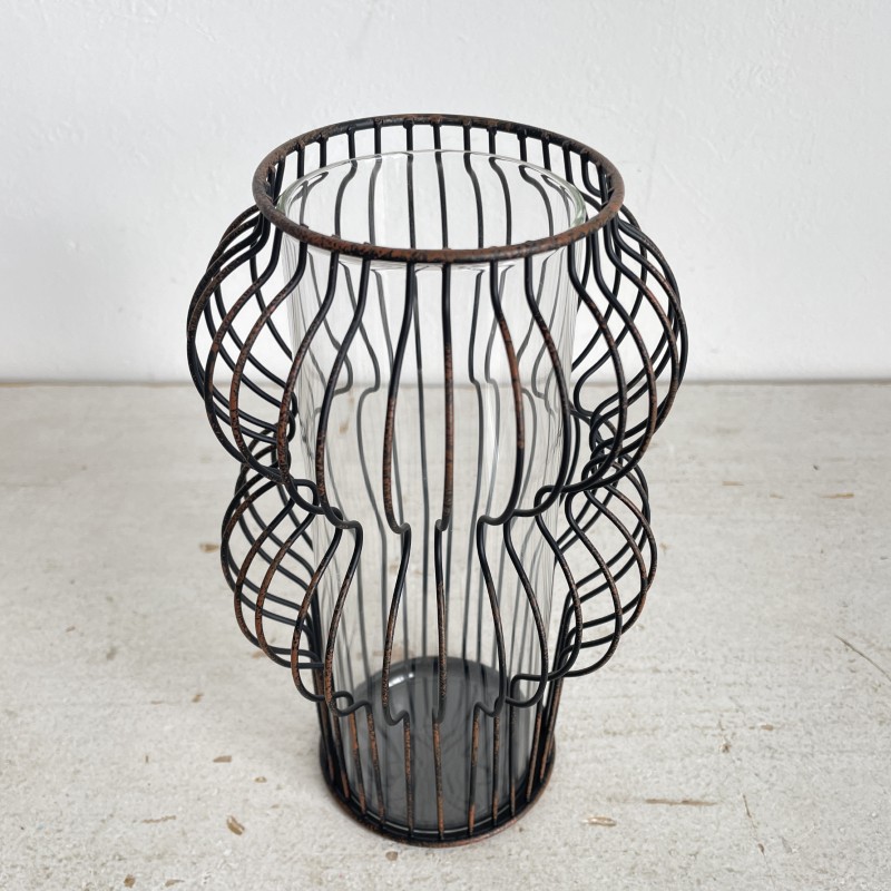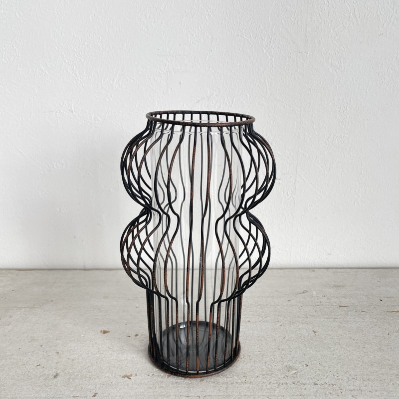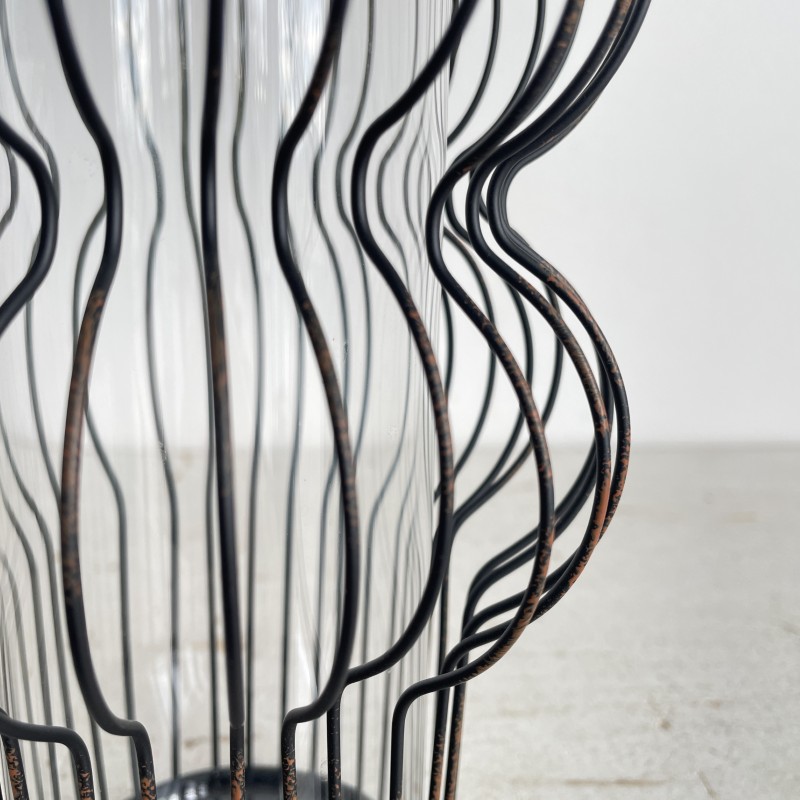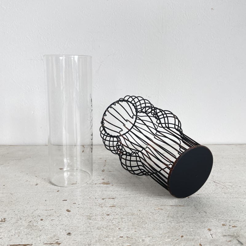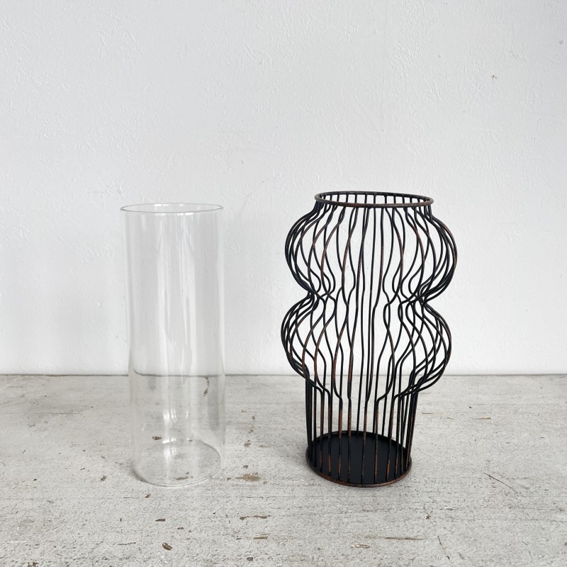 流線型のフォルムを描くワイヤーケージの中に、ガラスチューブを収めたデザインベース。