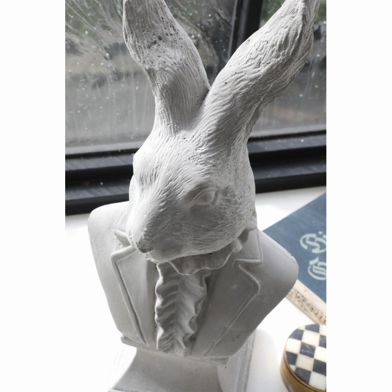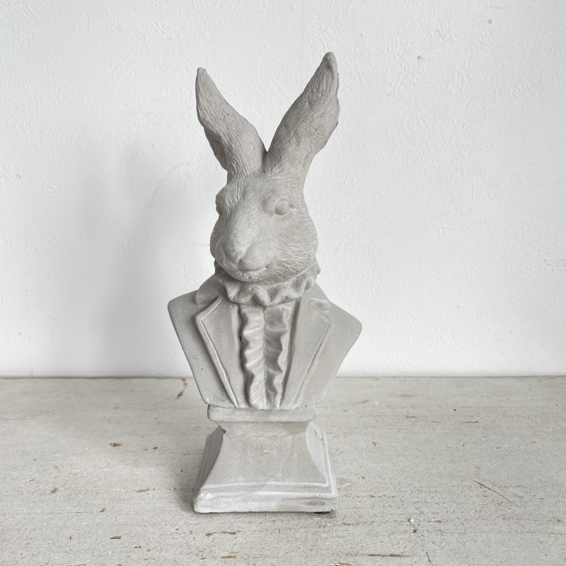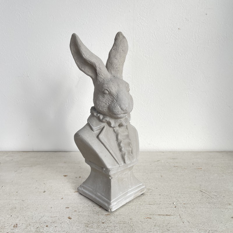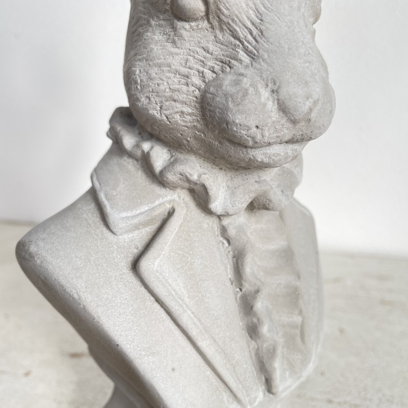 ぴしりと着こなした洋服に身を包み、どこか遠くを見据えるような眼差しが印象的なアニマルスタチュー。