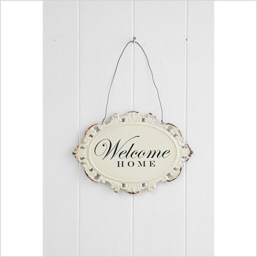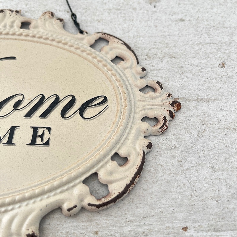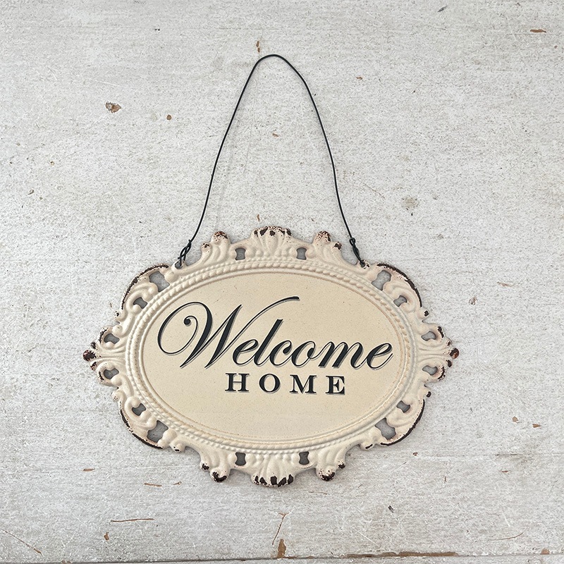 アイボリーのベースに「Welcome HOME」の文字が映え、玄関まわりを明るく彩ります。