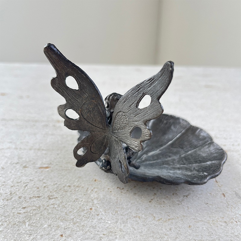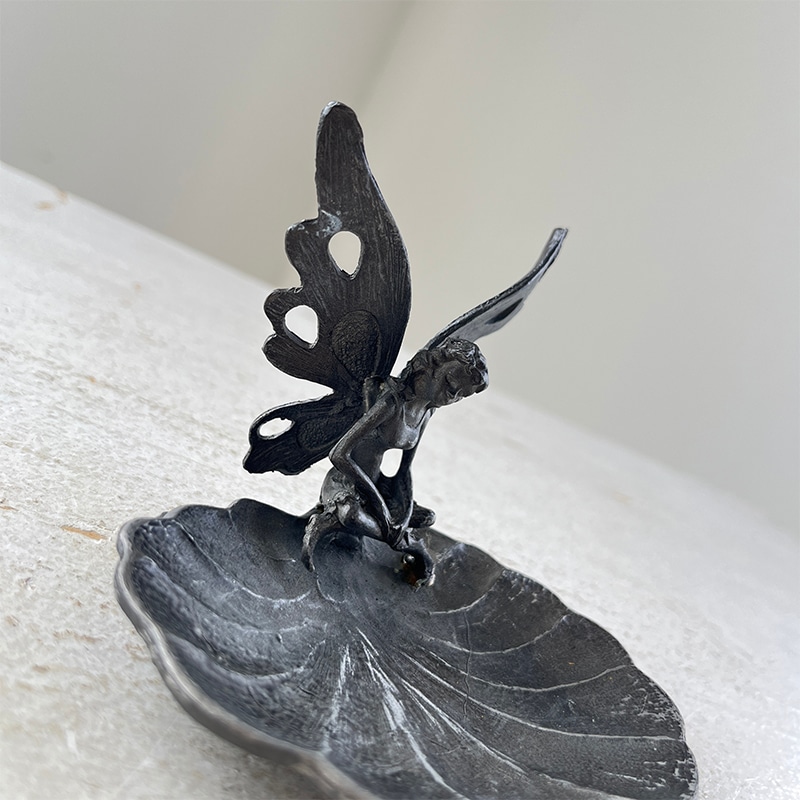 羽を広げてそっと腰かける、小さな妖精のオブジェ付きトレイ。