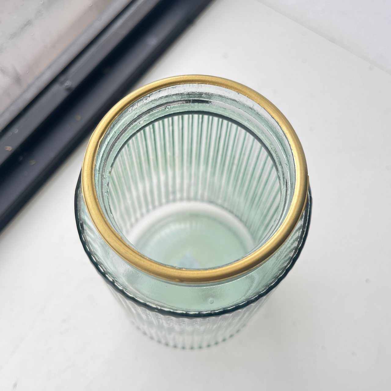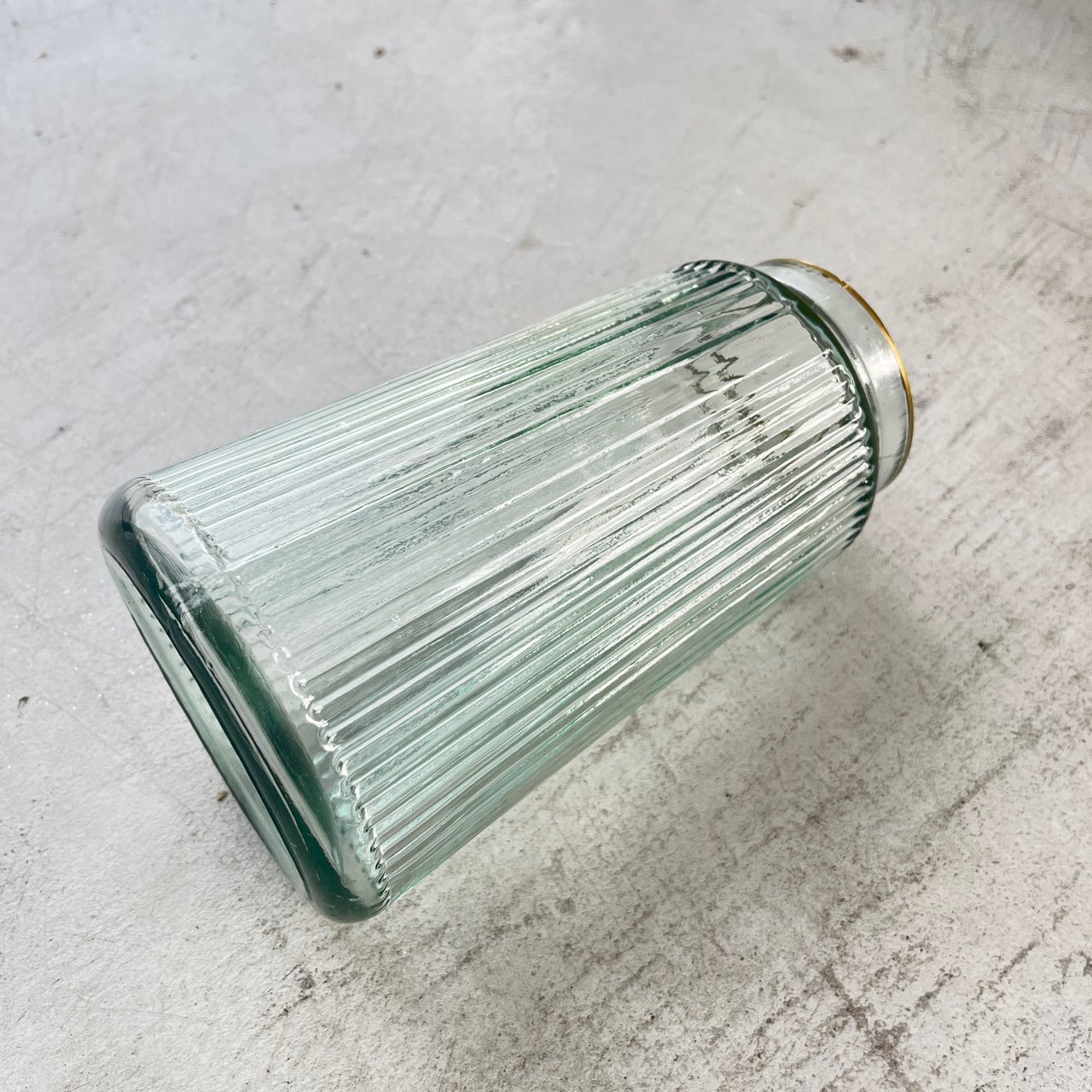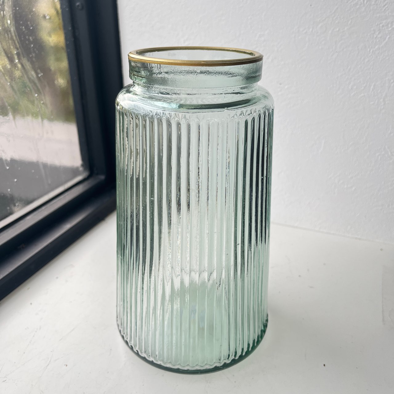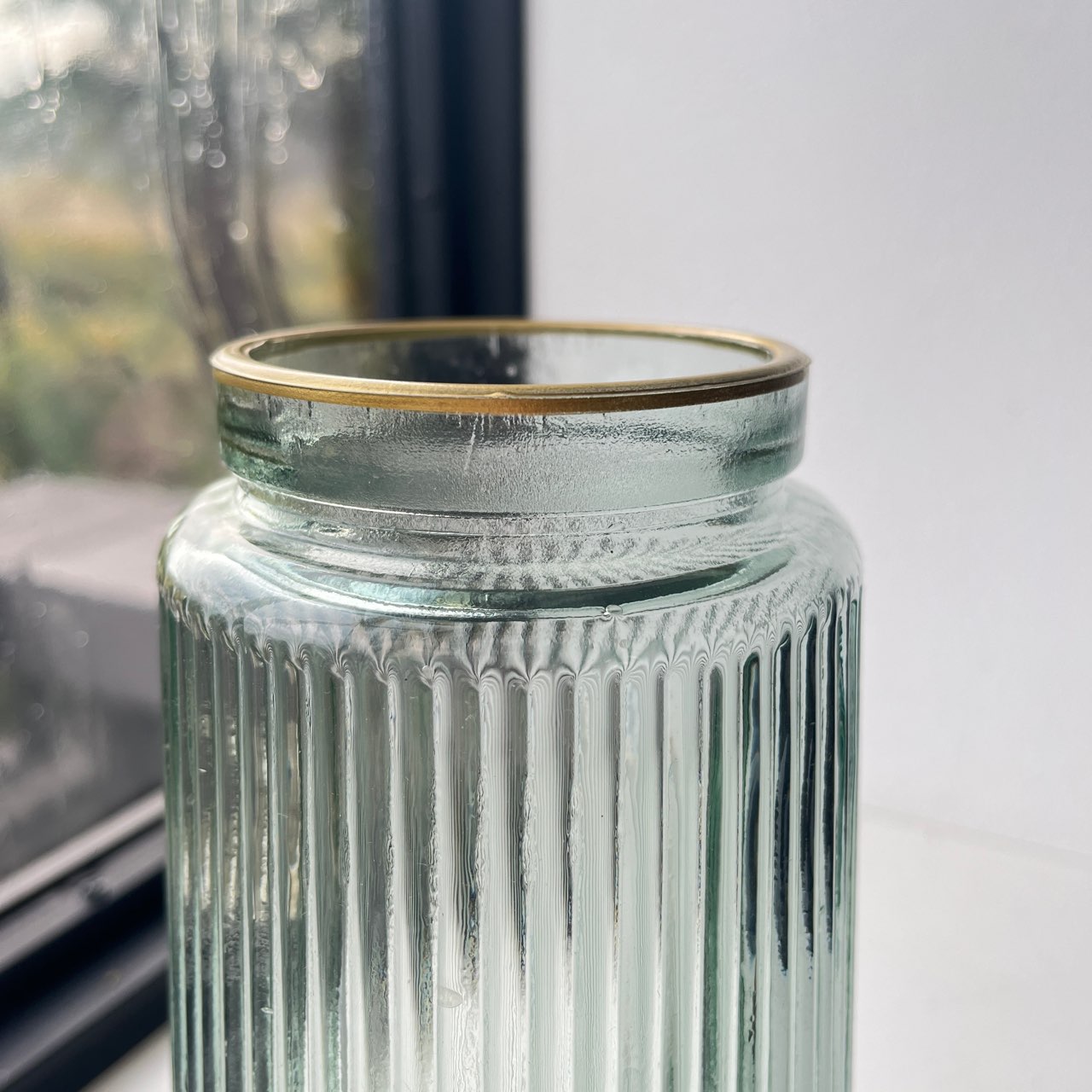 縦に入ったリブ模様が凛とした印象を与える、ガラスのフラワーベース。