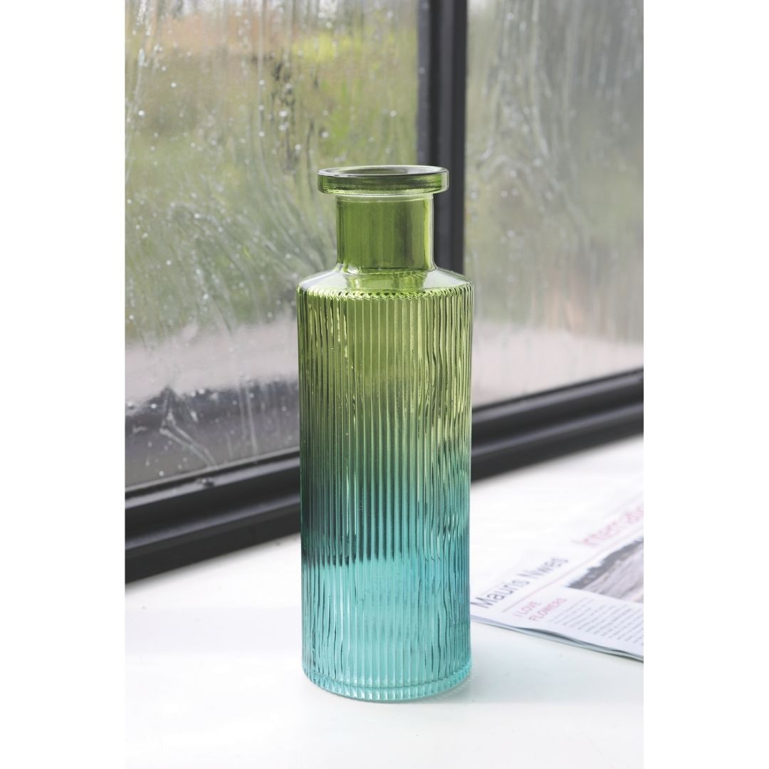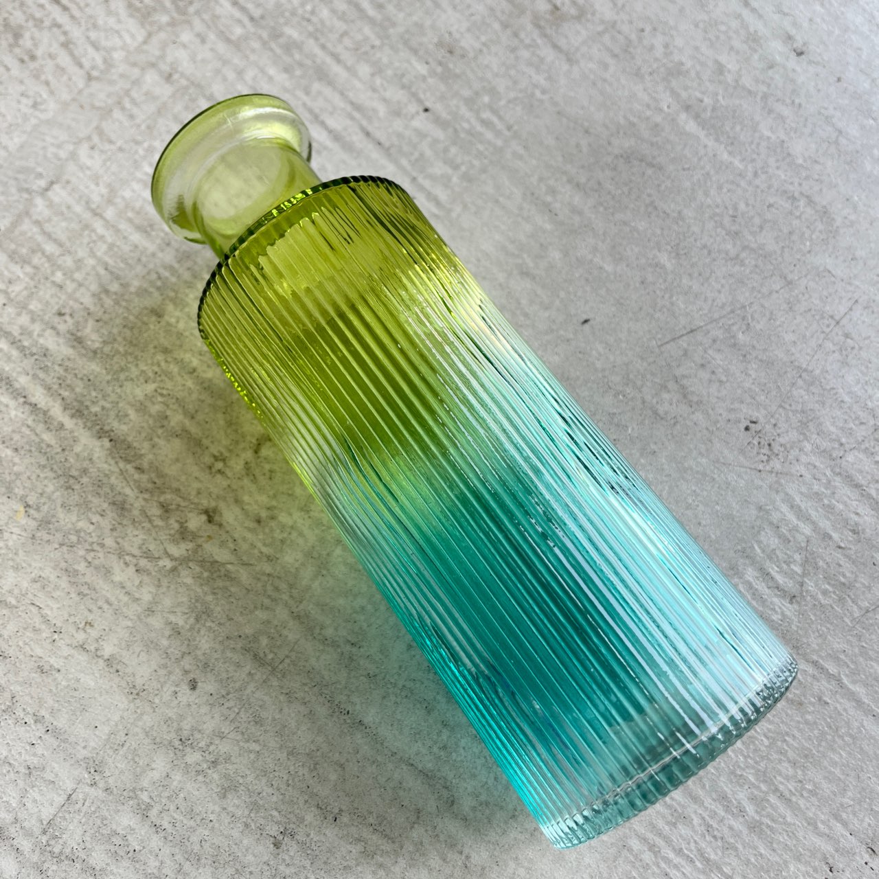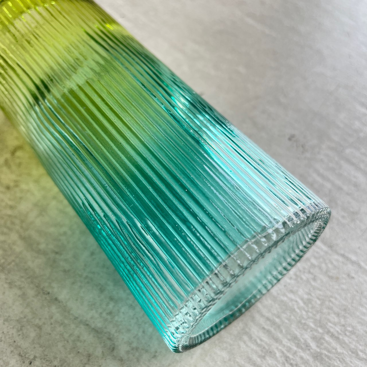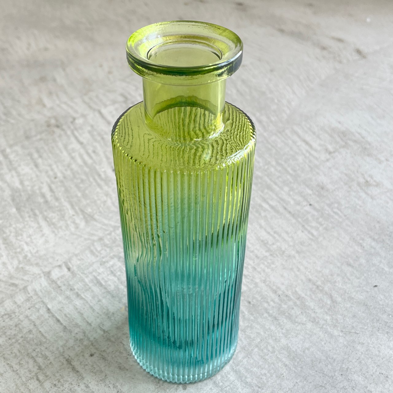 透明感のあるグリーンからブルーへのグラデーションが美しいフラワーベース。