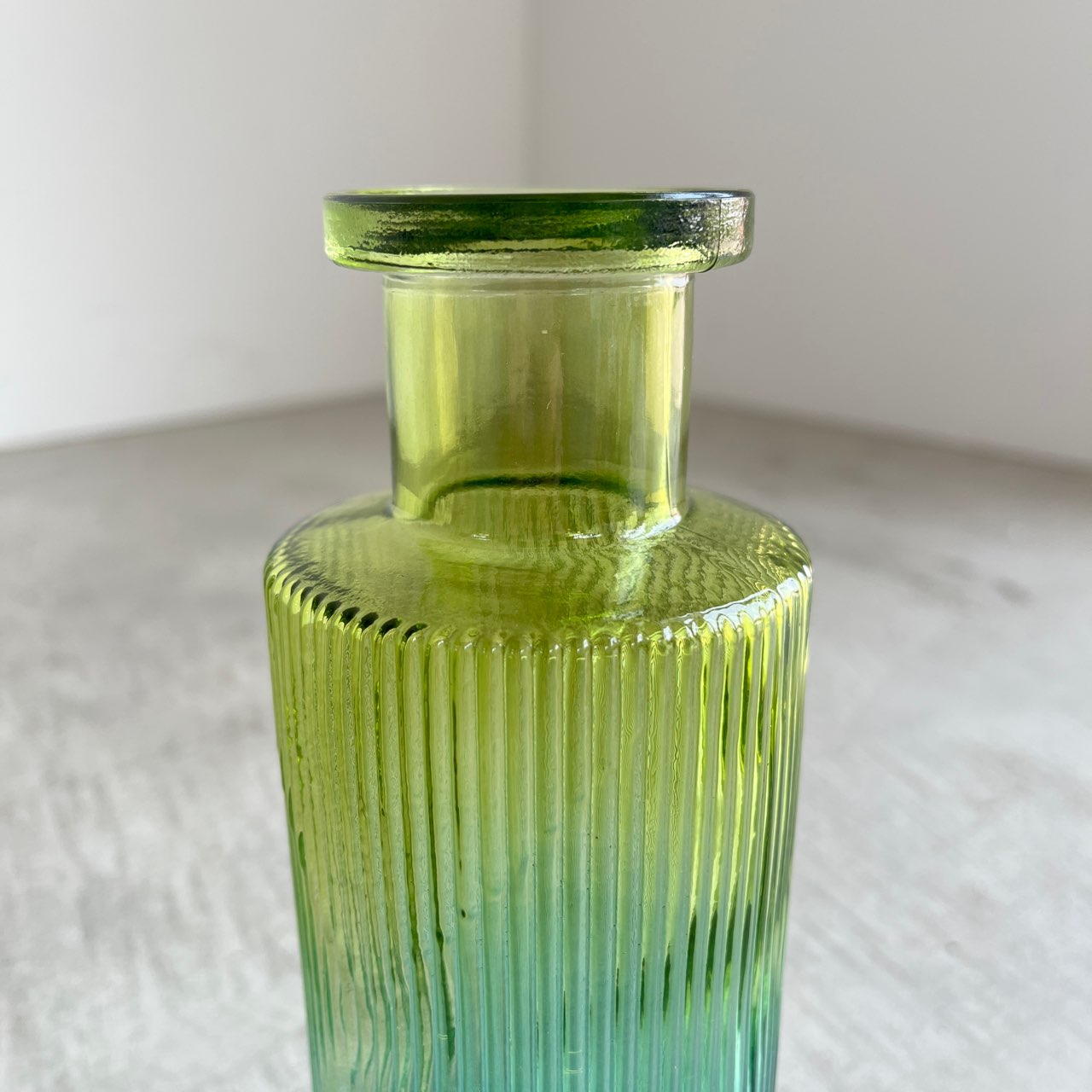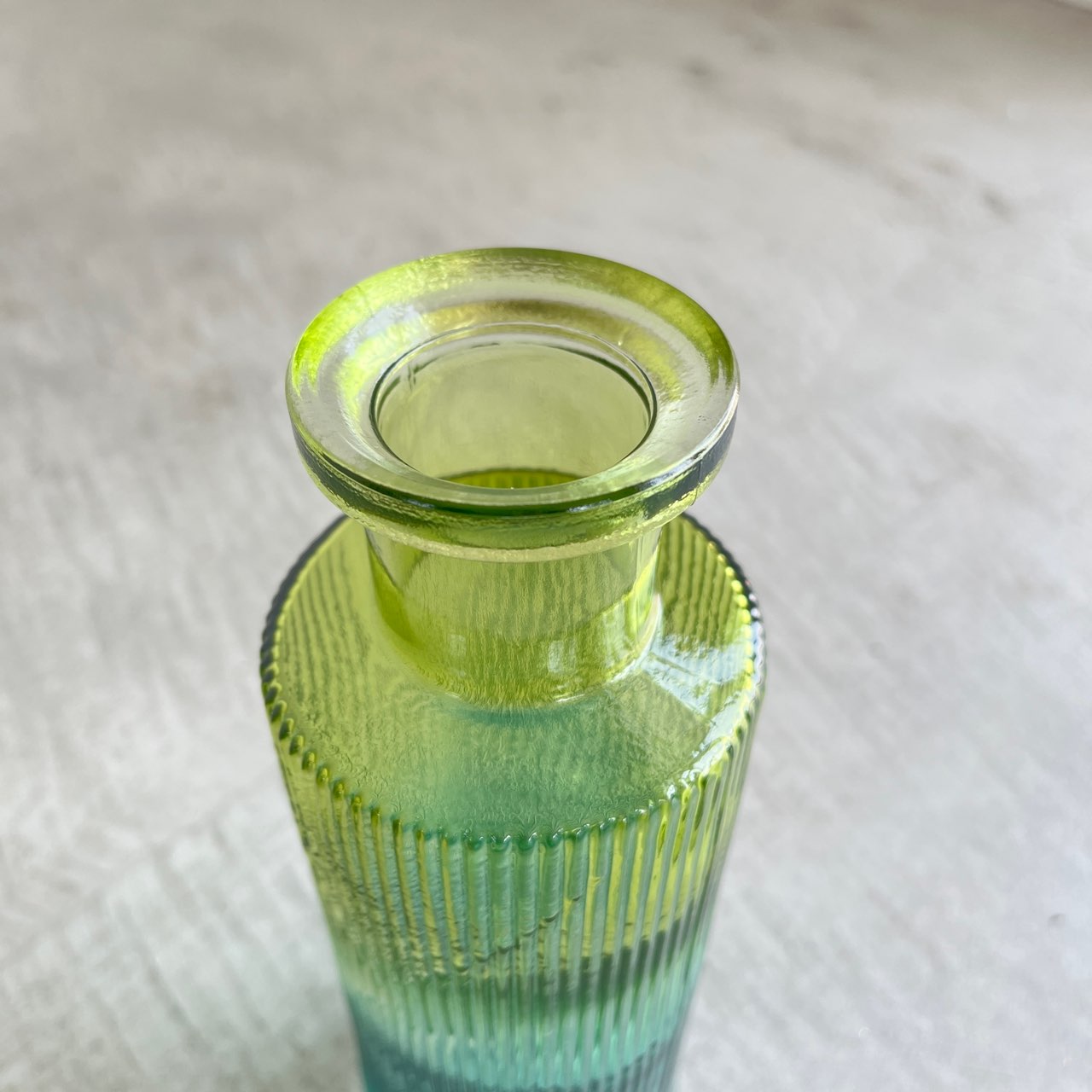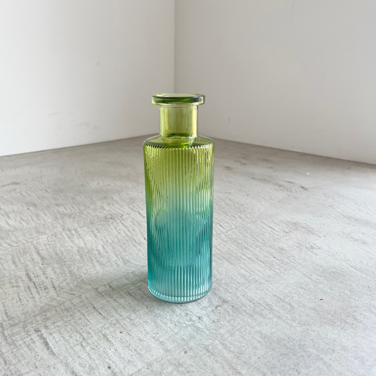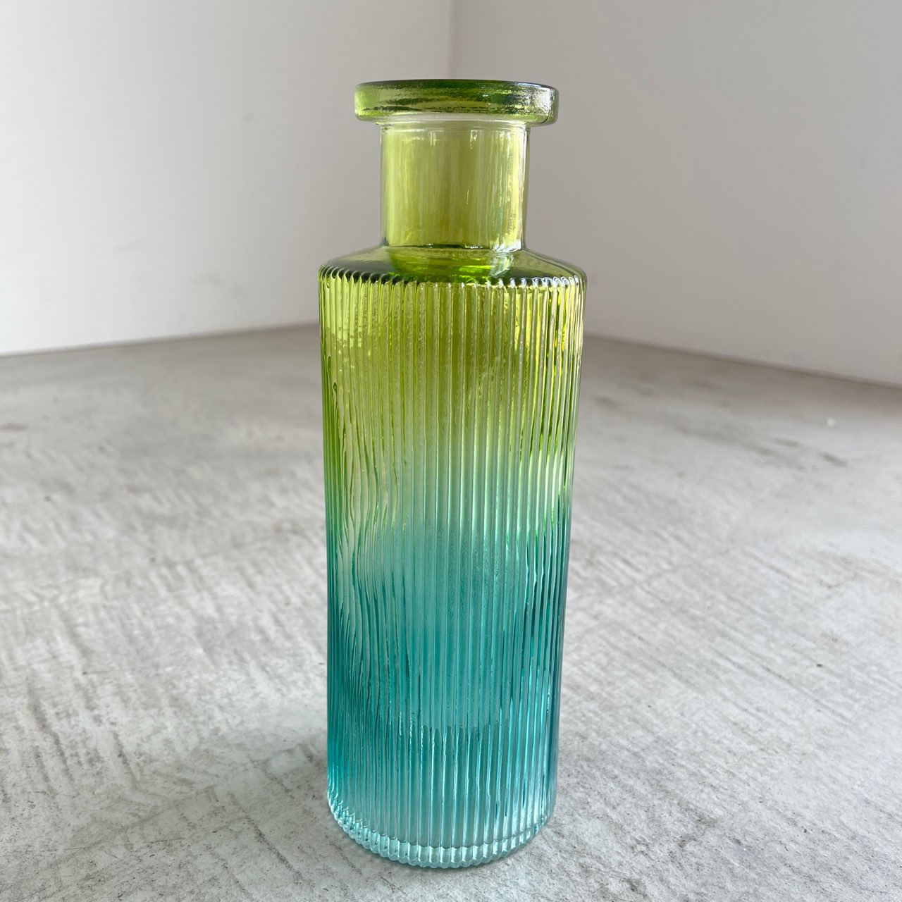 透明感のあるグリーンからブルーへのグラデーションが美しいフラワーベース。