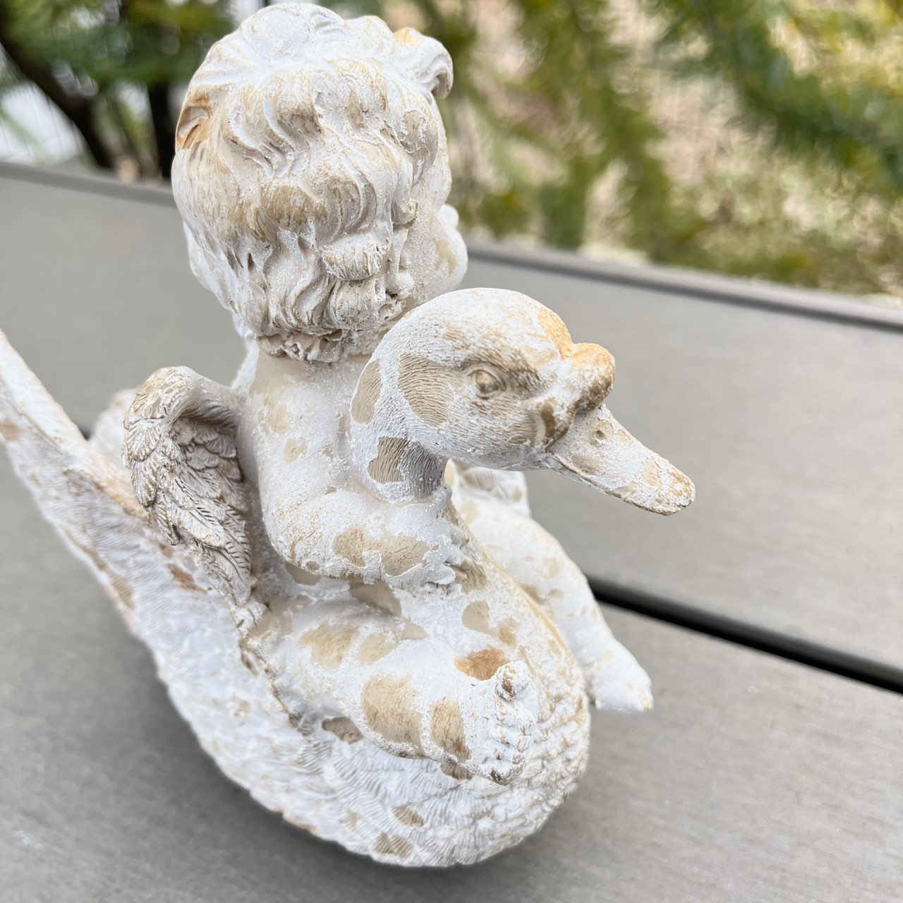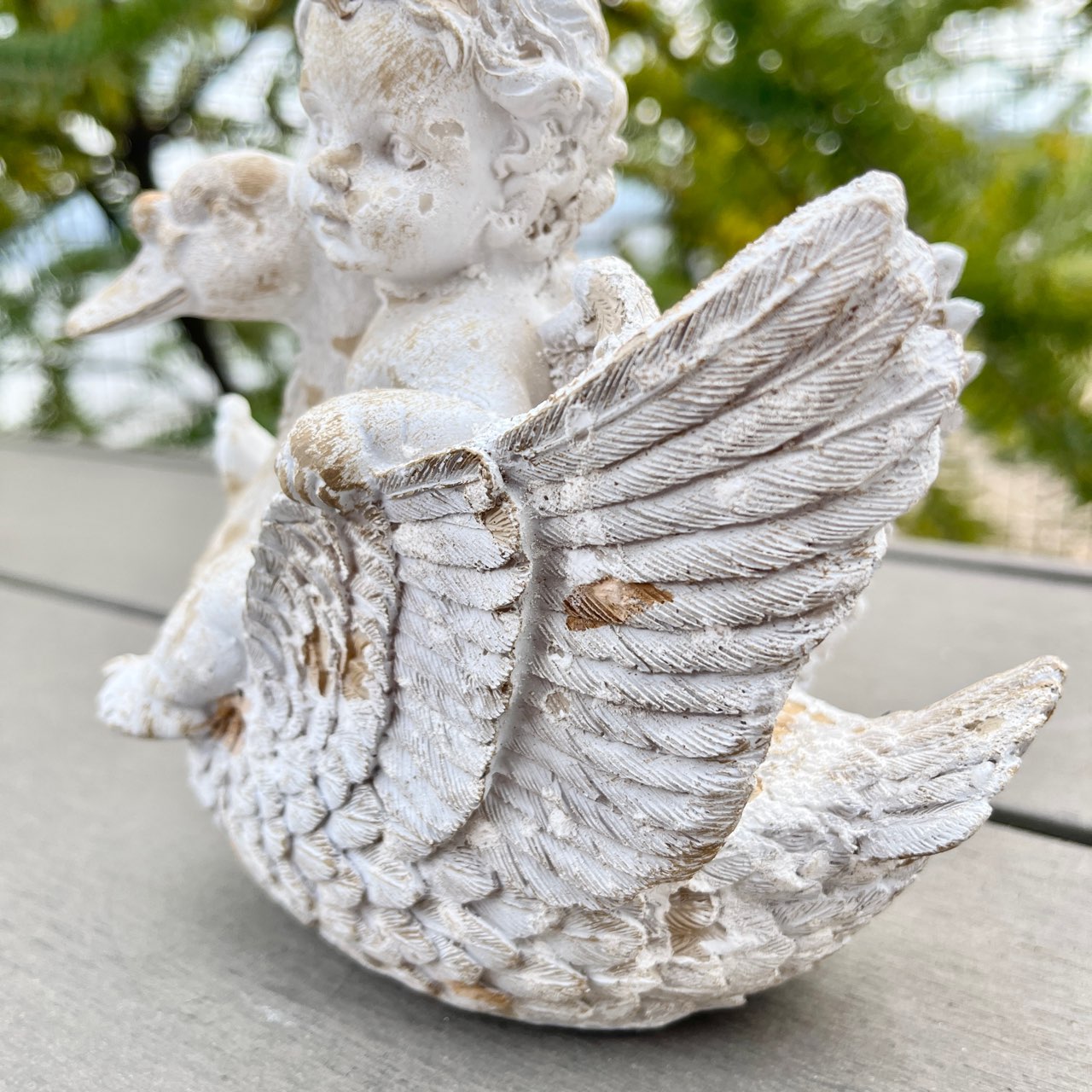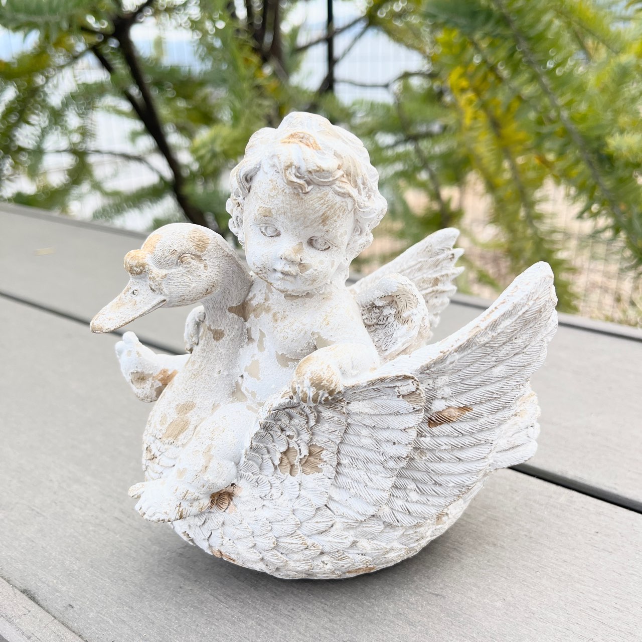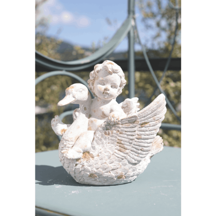 白鳥と戯れる天使の姿が微笑ましいオブジェ。