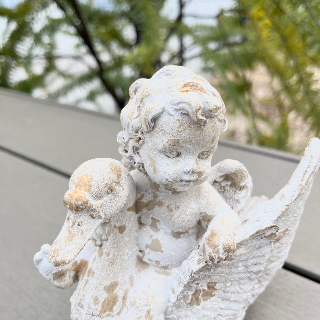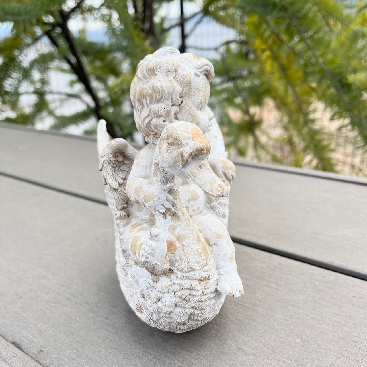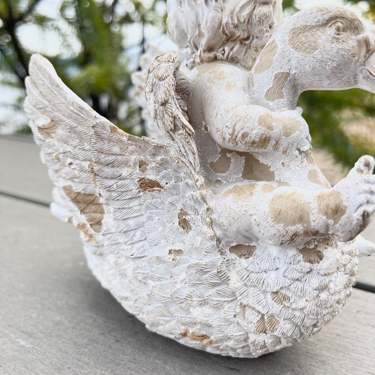 白鳥と戯れる天使の姿が微笑ましいオブジェ。