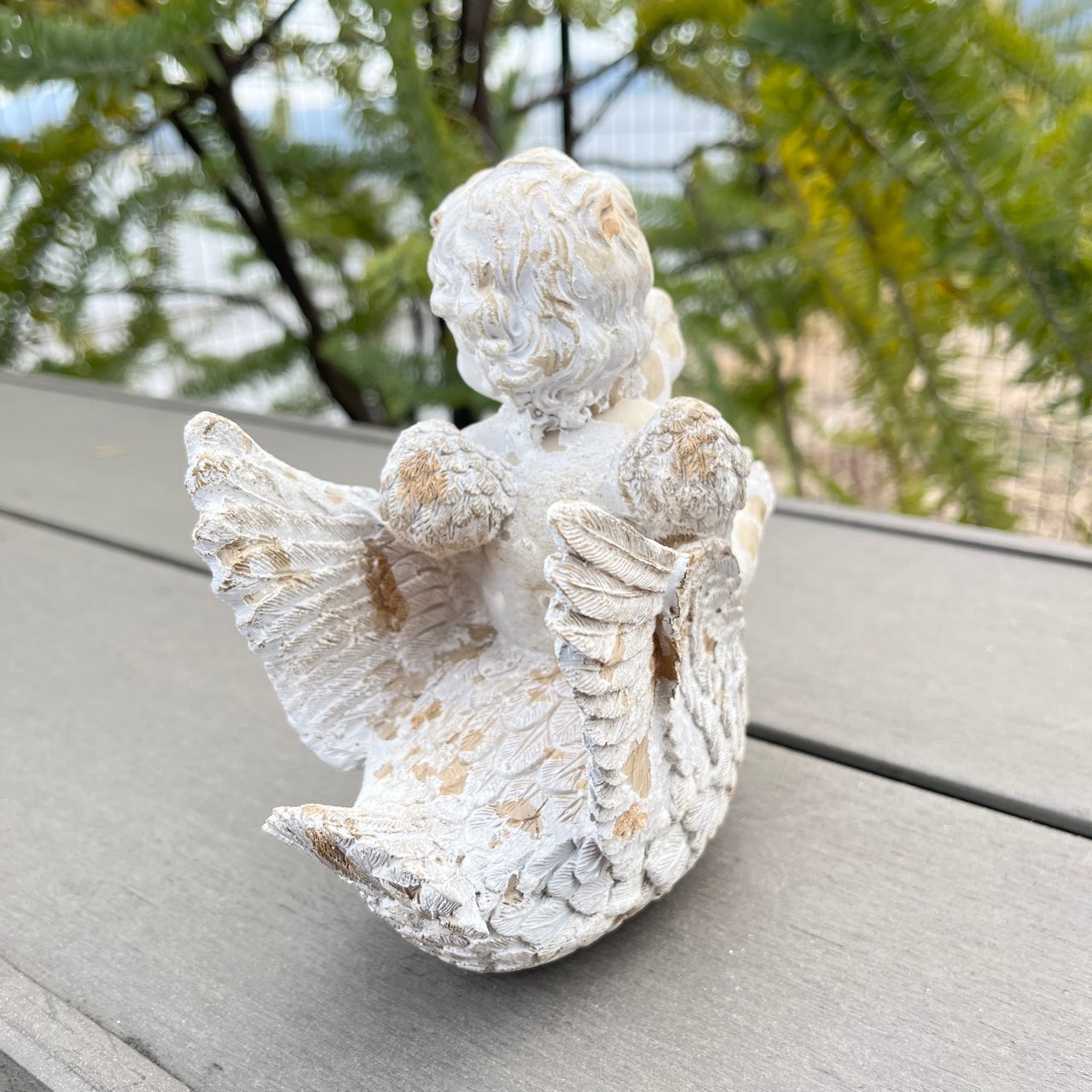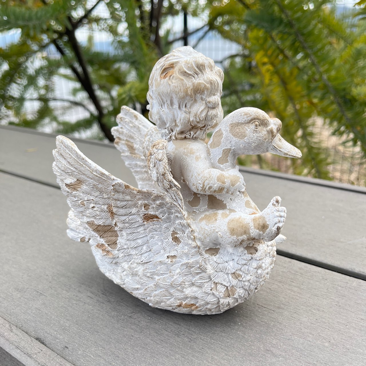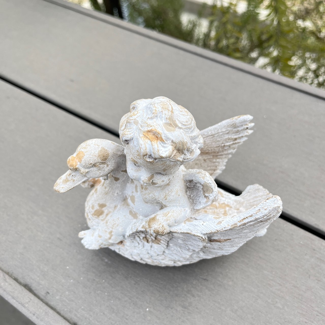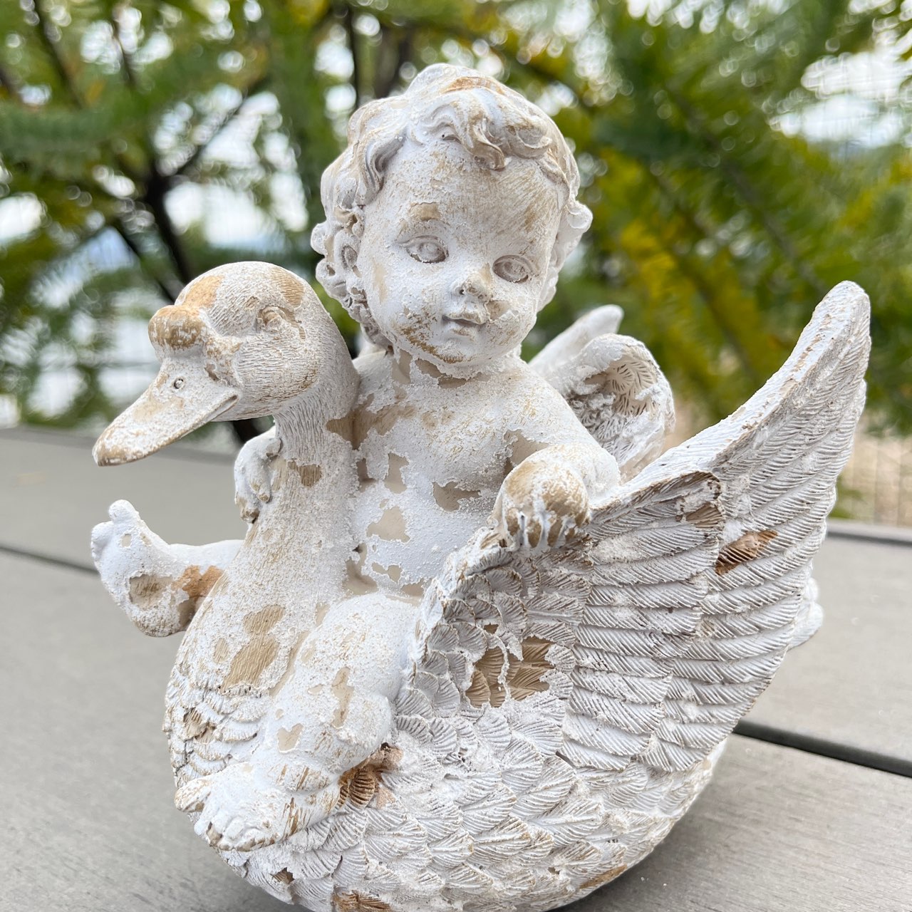 白鳥と戯れる天使の姿が微笑ましいオブジェ。