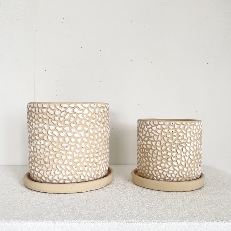 ハンドクラフトのような温もりを感じさせるデザインは、植物の生命力と調和し、お部屋に優しい雰囲気を添えます。
