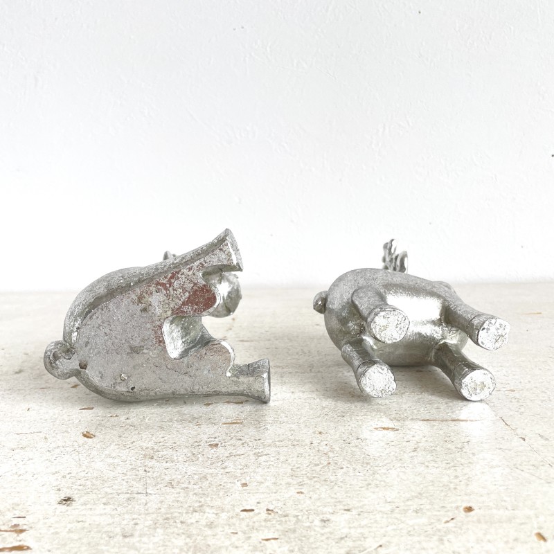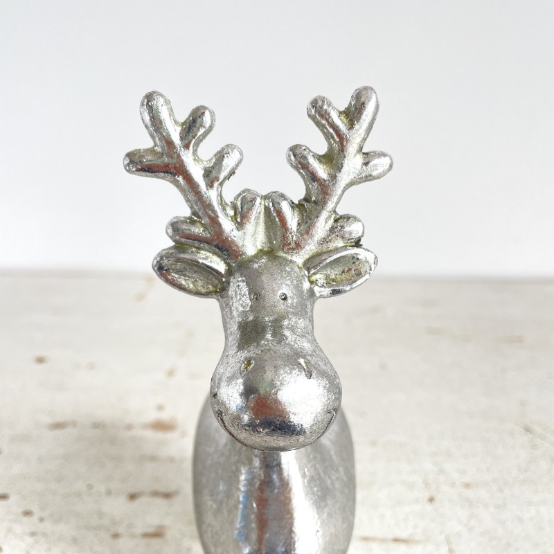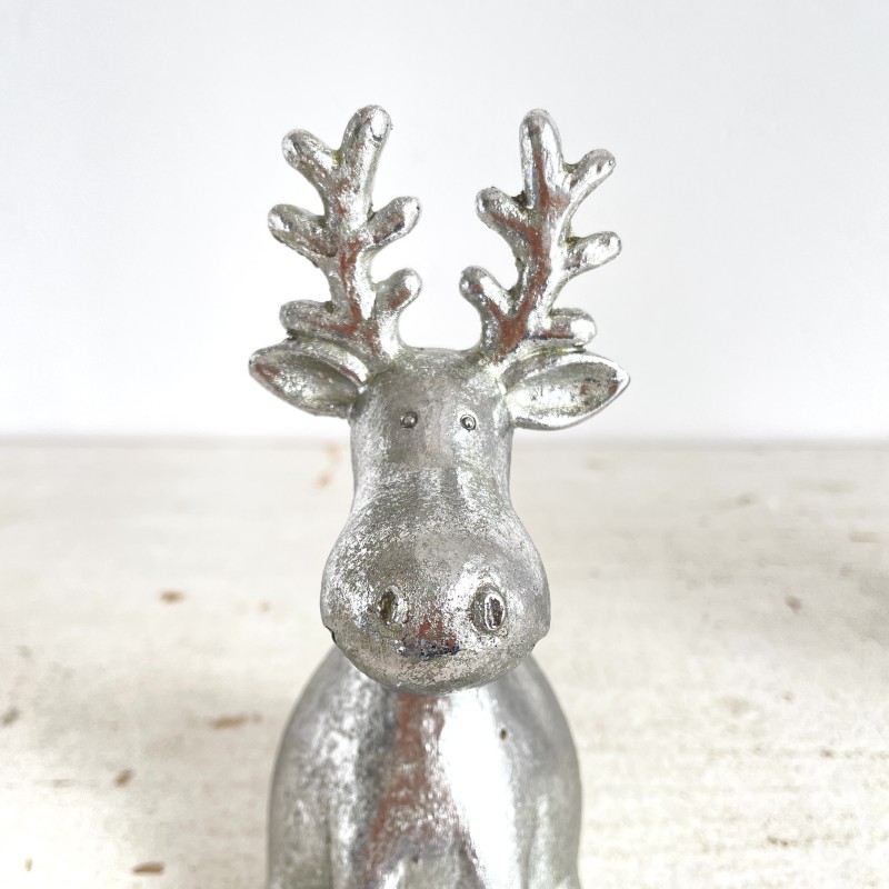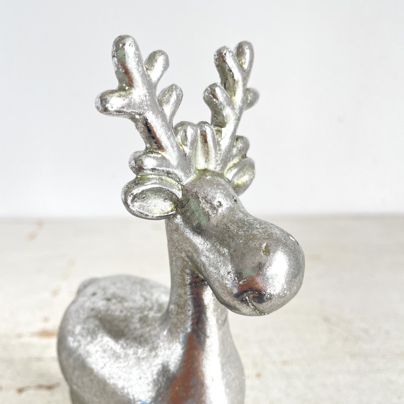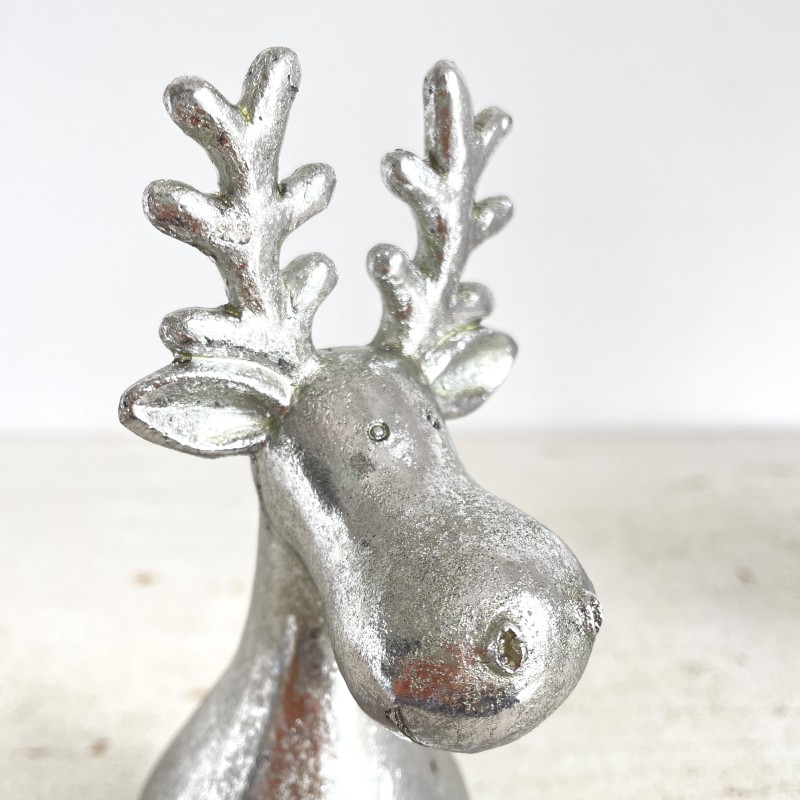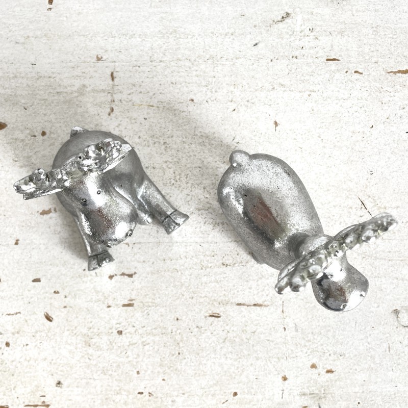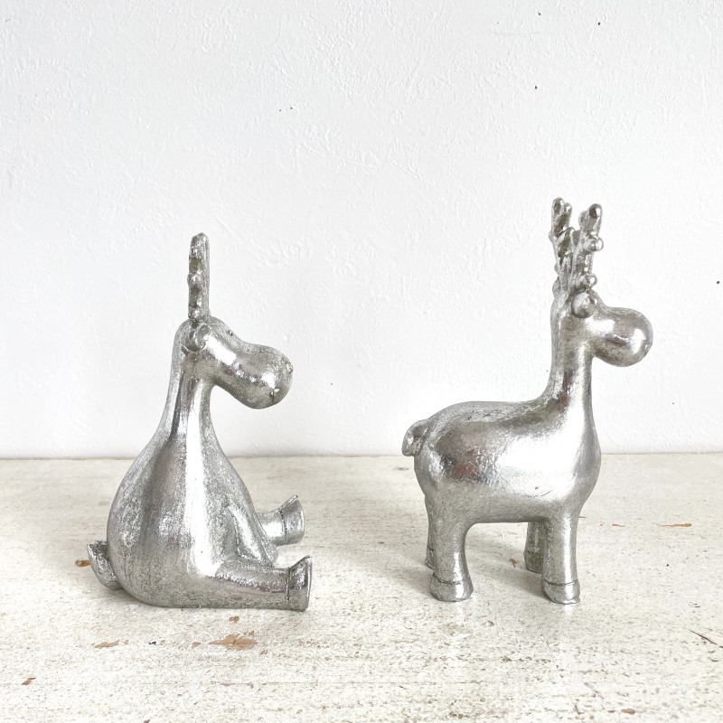 洗練されたシルバーカラーが美しい、2ポーズのトナカイのオブジェセット。